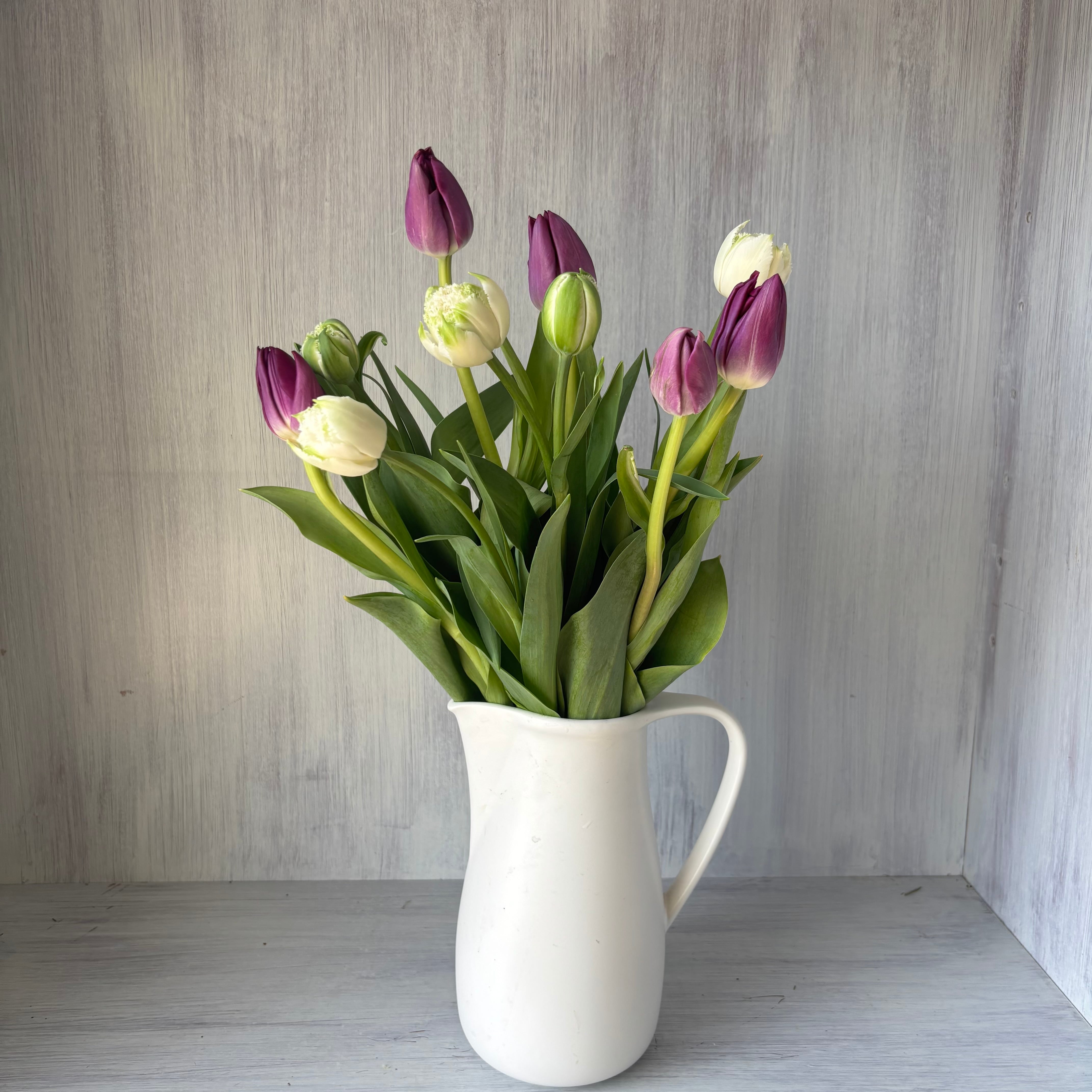 花色、花形の豊富さと、すっきりと洗練されたフォルムで万人に愛されるチューリップ。切花のチューリップは冬から早春にかけて出回りますが、花壇や植木鉢のチューリップと同じく昼間に開いて夕方には閉じ、また切花として切られた後も光を求めて茎が伸びます。生けた翌日、思いもよらぬ方向に動いていることもしばしば。日々刻々と変化する様子を楽しめるのもチューリップの魅力の一つです。