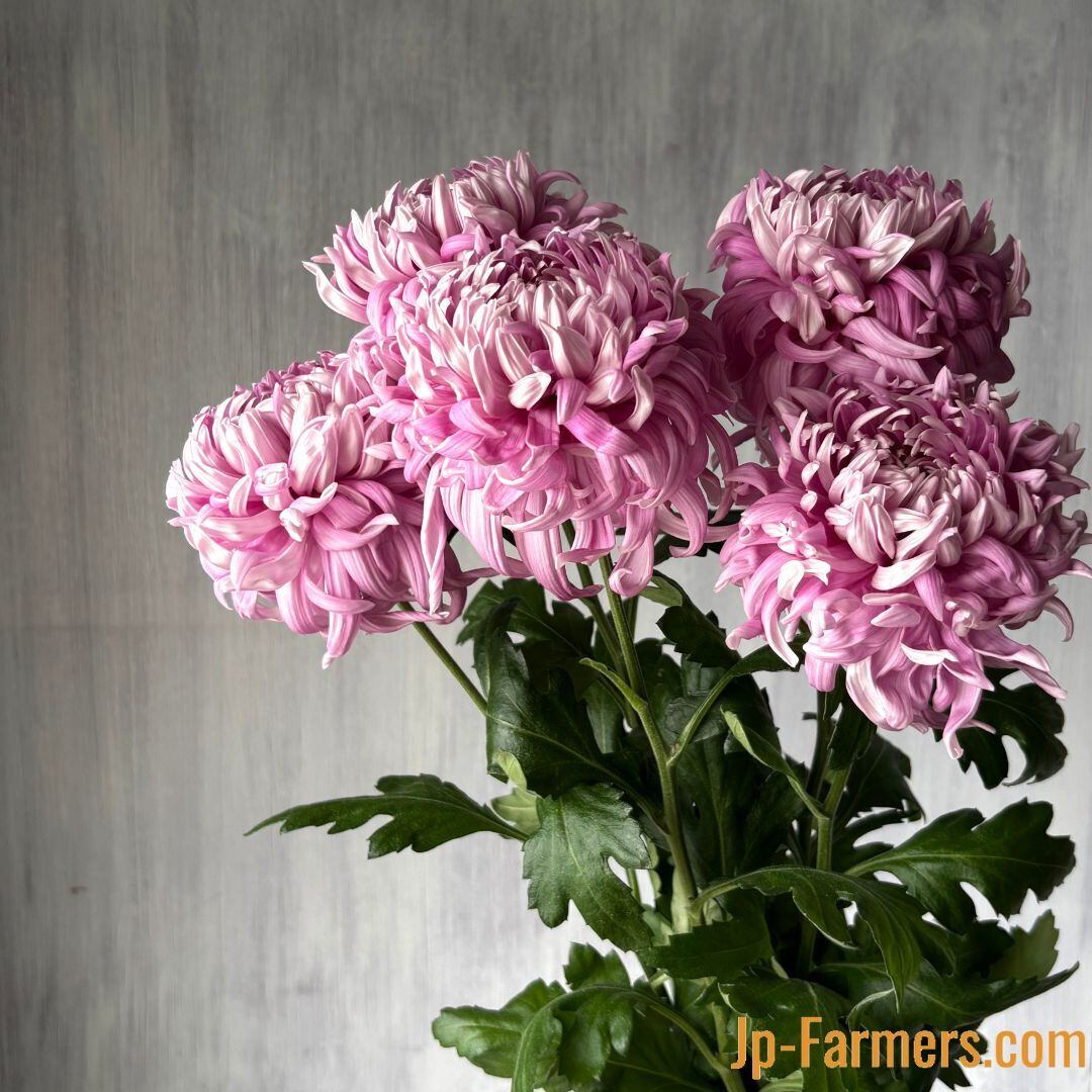 咲き進むにつれて外花弁がランダムに枝垂れて厚みを増し、キクの「花芸」を観ているかのようです。花姿の変化を楽しむような観賞の仕方ができ、マノアピンク色はジャパンデザイン特別賞受賞しているほど。