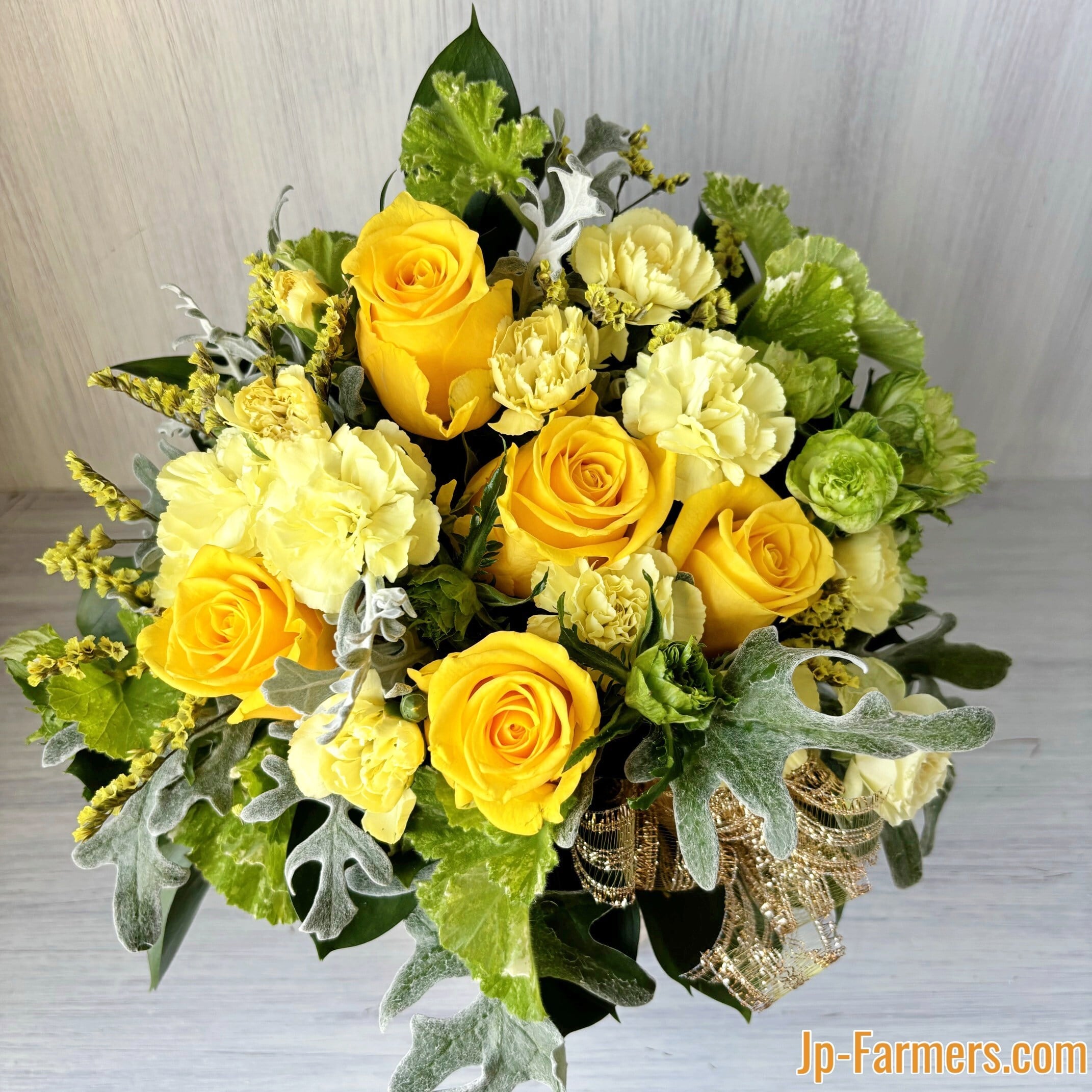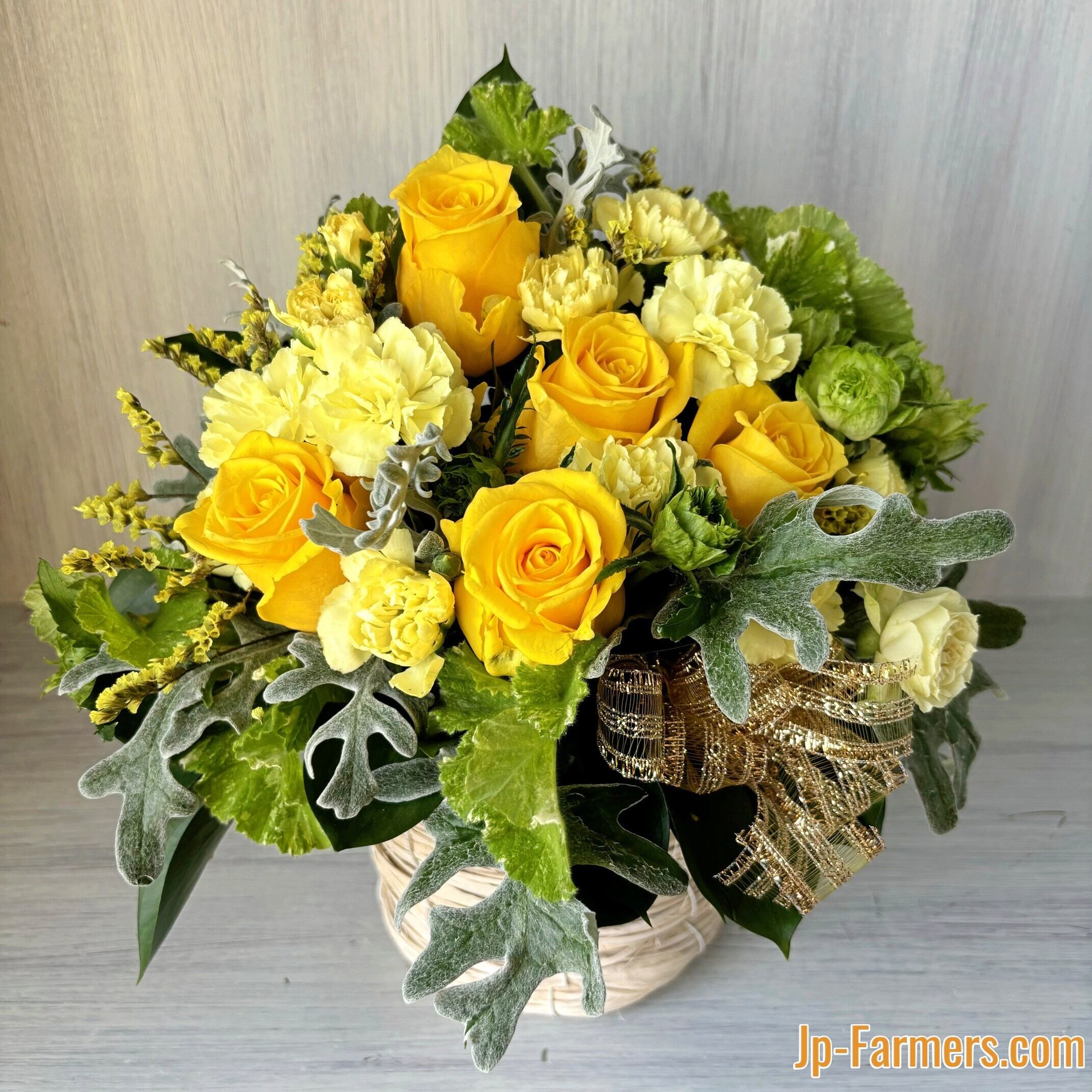 ハッピーイエロー♪ イエローバラとカーネのビタミンカラーのアレンジメント