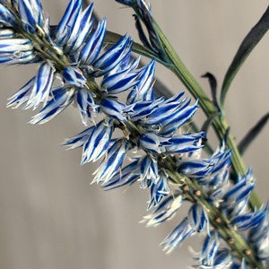 しっかり起毛して染め発色よく光の角度で、輝いてみえ、穂先と中心、近くでみるひと花ひと花、それぞれに色の度合がかわってきますので、いいアクセントになってくれる花材間違いなしです。
