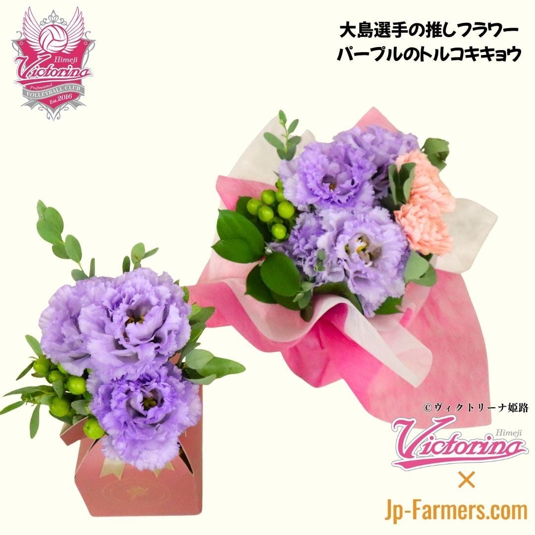 <大島杏花選手のラブフラワーは紫のトルコキキョウ>