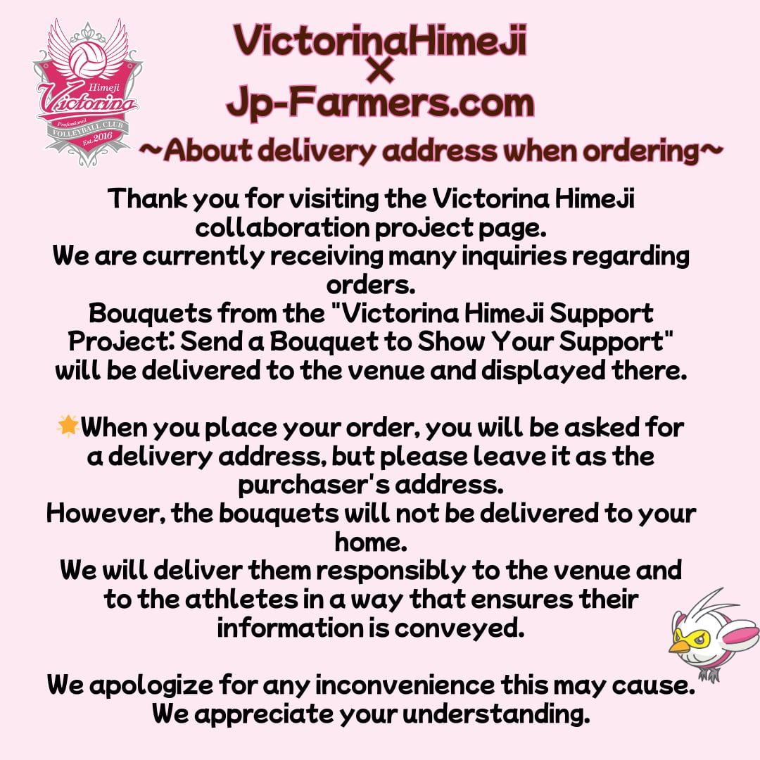 Bouquets from the "Send a Victorina Himeji Support Project Bouquet to Support the Team" will be delivered to the venue and displayed there.
