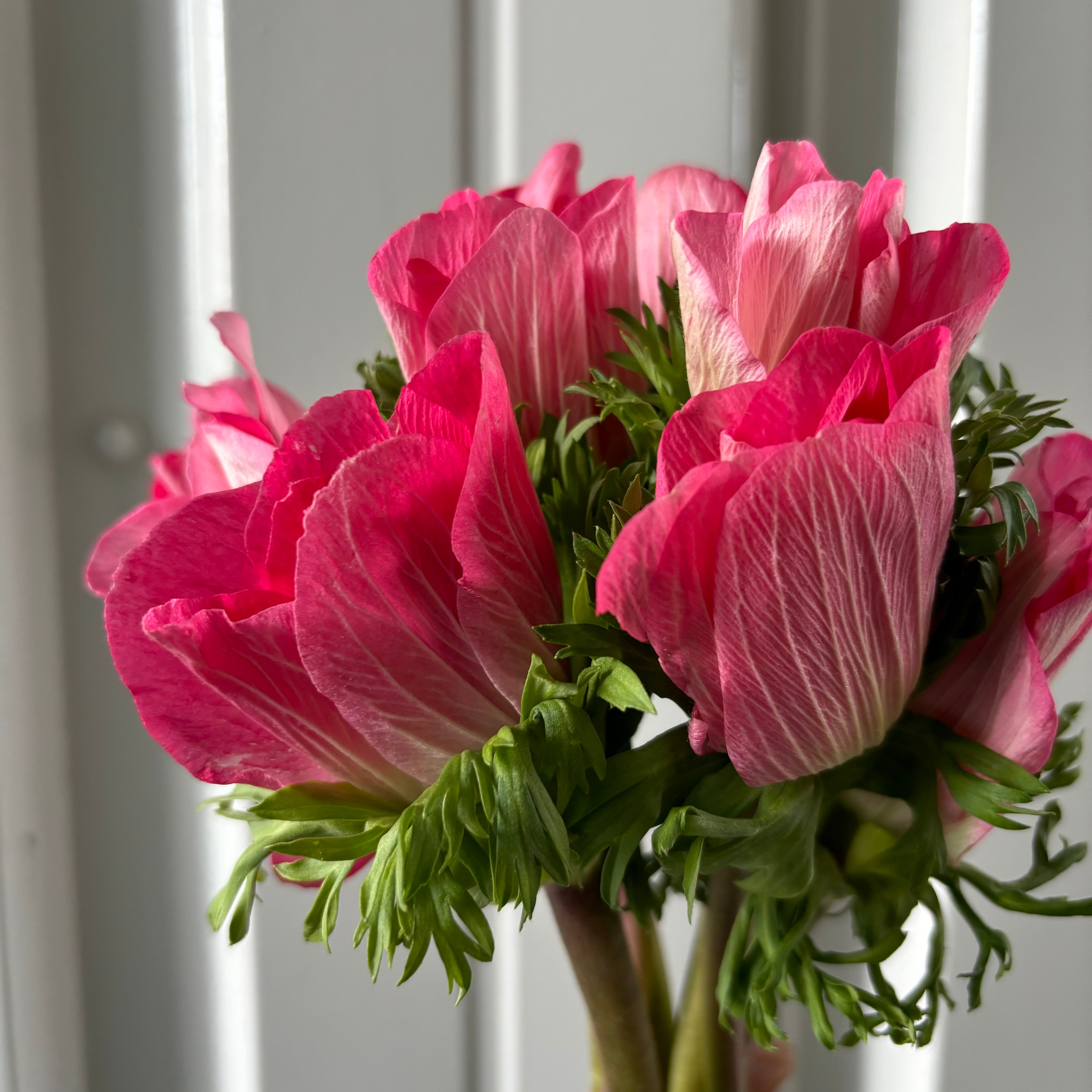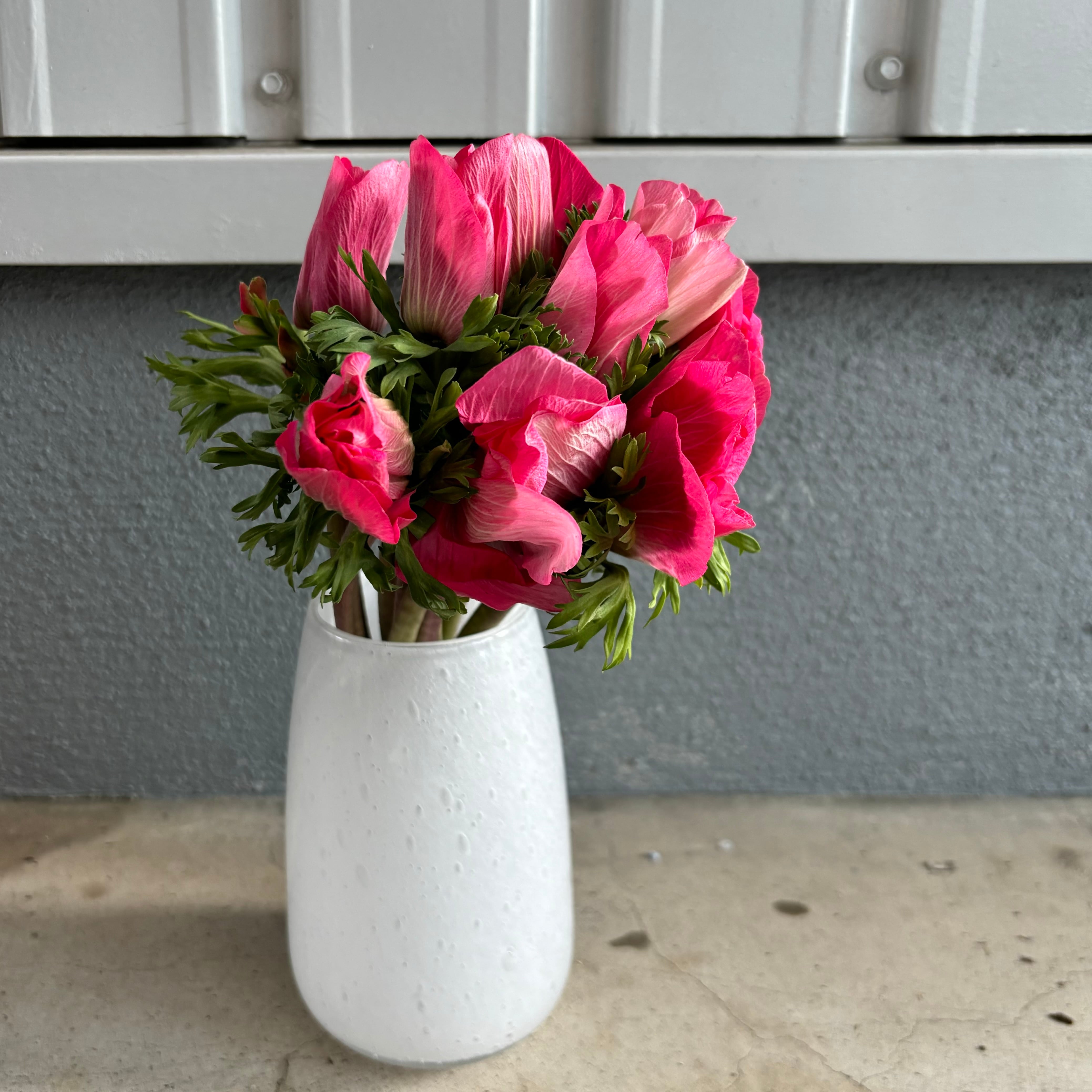 この花びらのように見えるのは実は花びらではなくガクです。ただし便宜上花びらと呼ばれています。アネモネは鉢植えでも切り花でも流通があり、人気のある春の花の一つです。