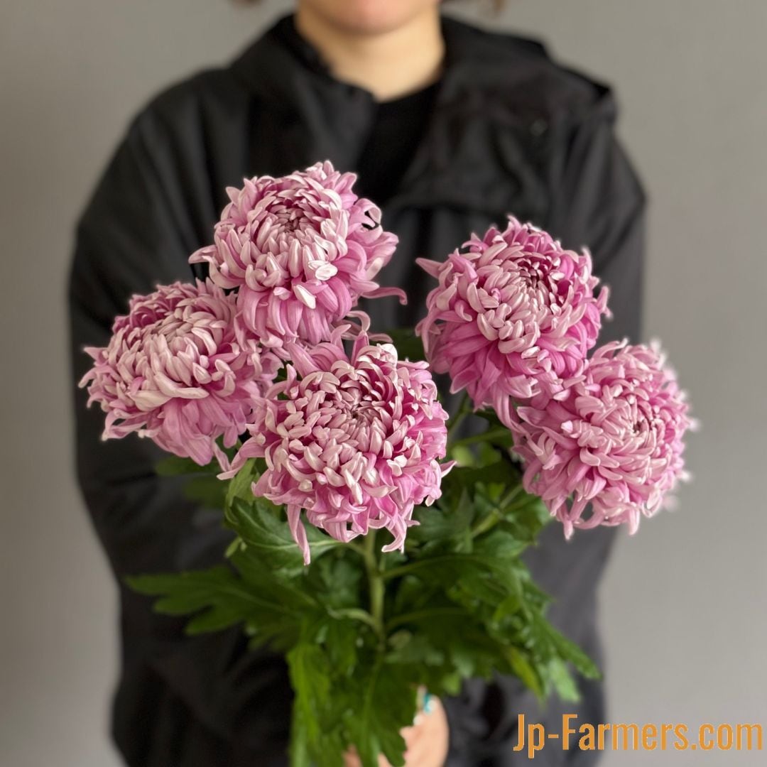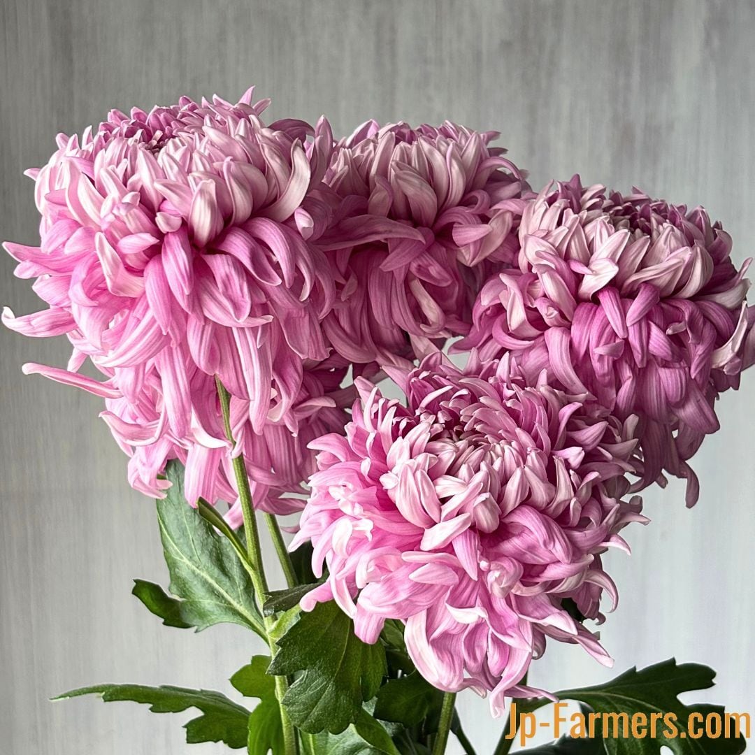 咲き進むにつれて外花弁がランダムに枝垂れて厚みを増し、キクの「花芸」を観ているかのようです。花姿の変化を楽しむような観賞の仕方ができ、マノアピンク色はジャパンデザイン特別賞受賞しているほど。
