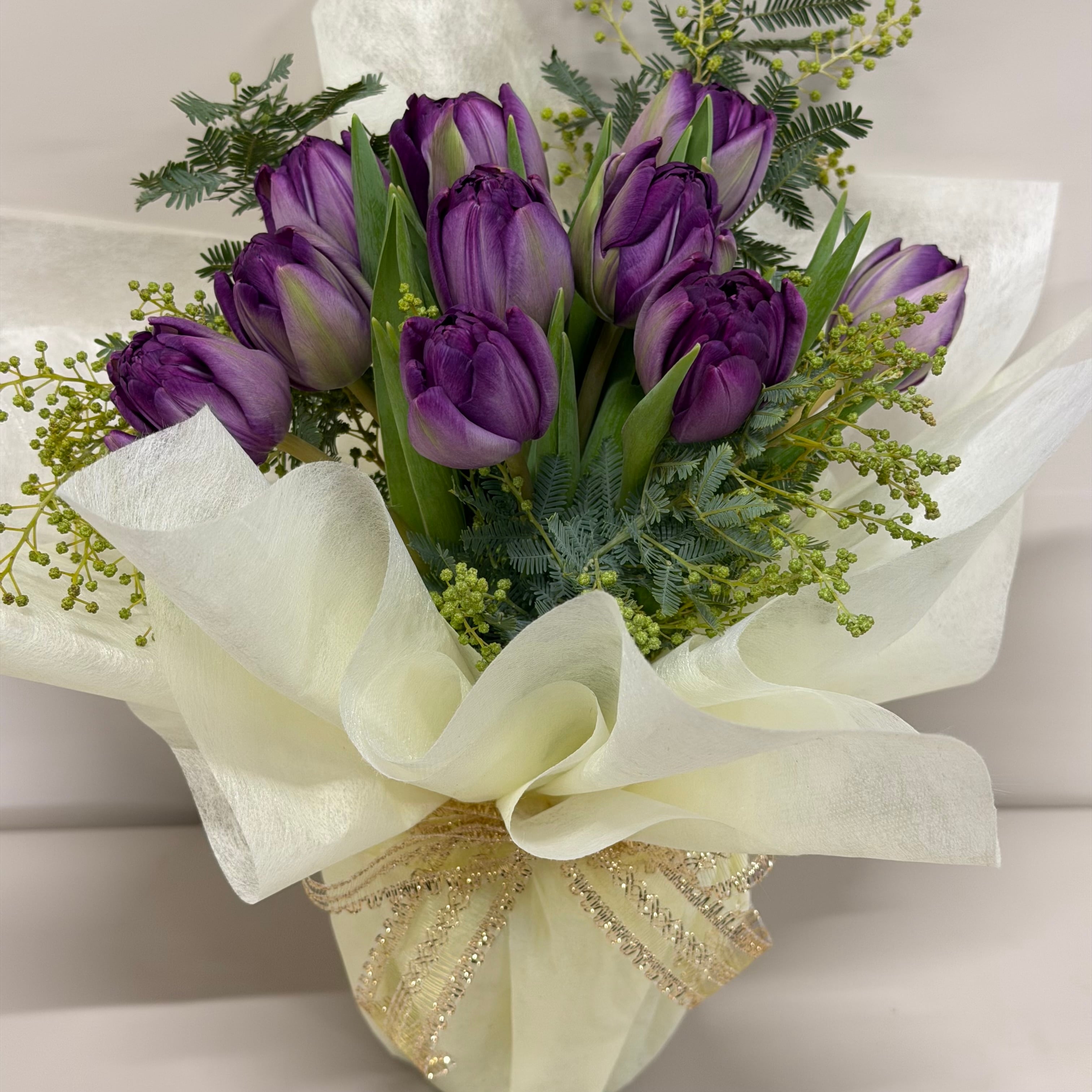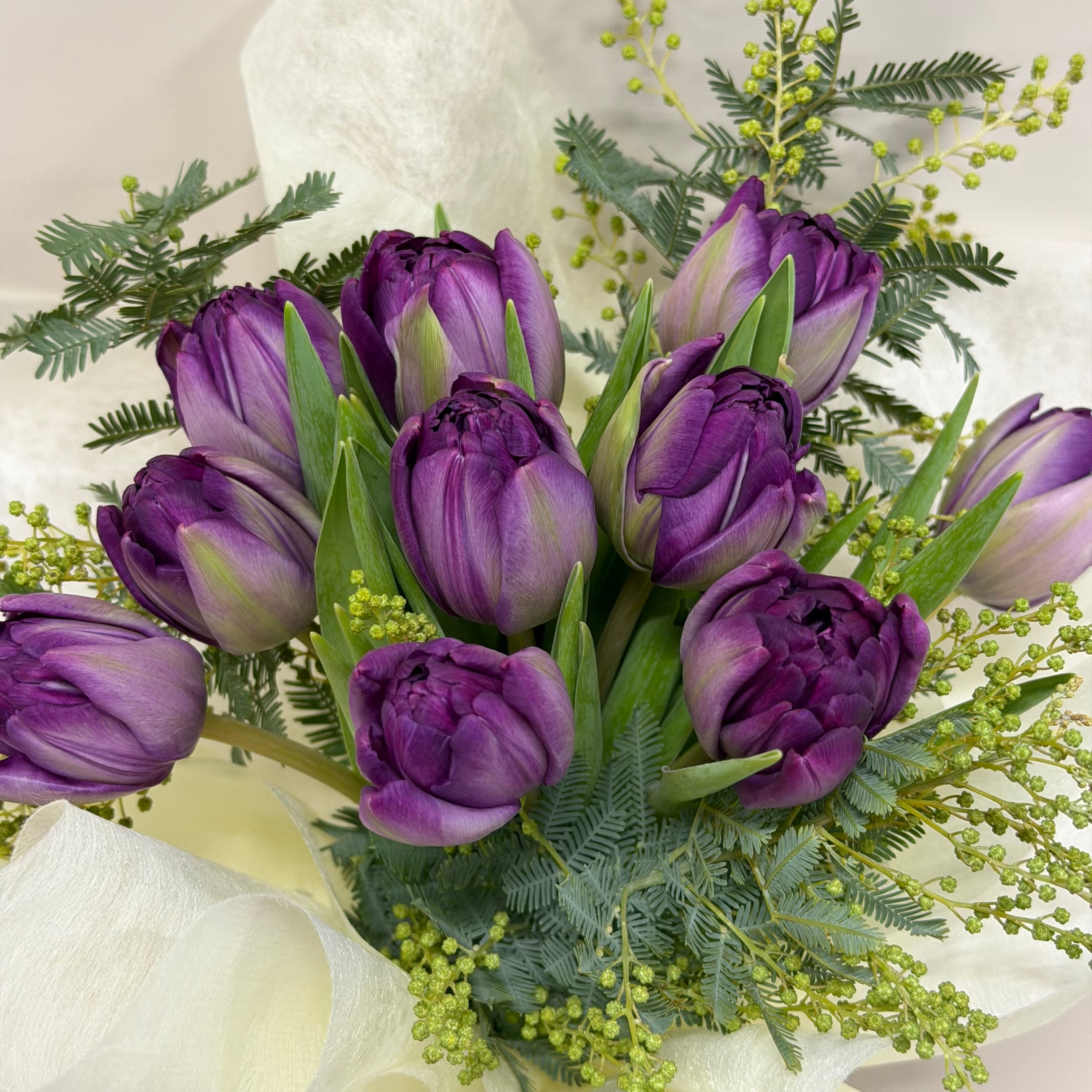 本数 チューリップ10本、アカシア、