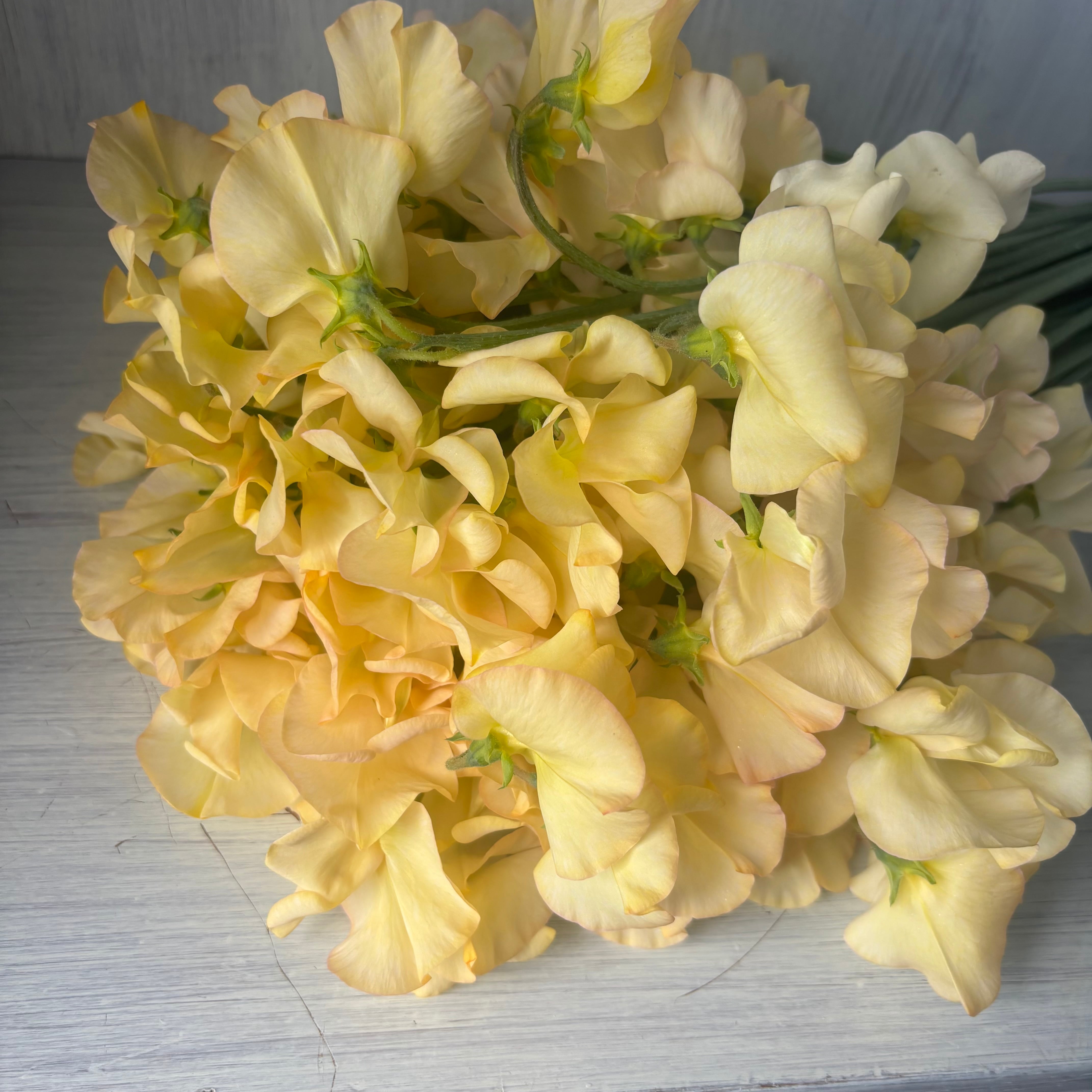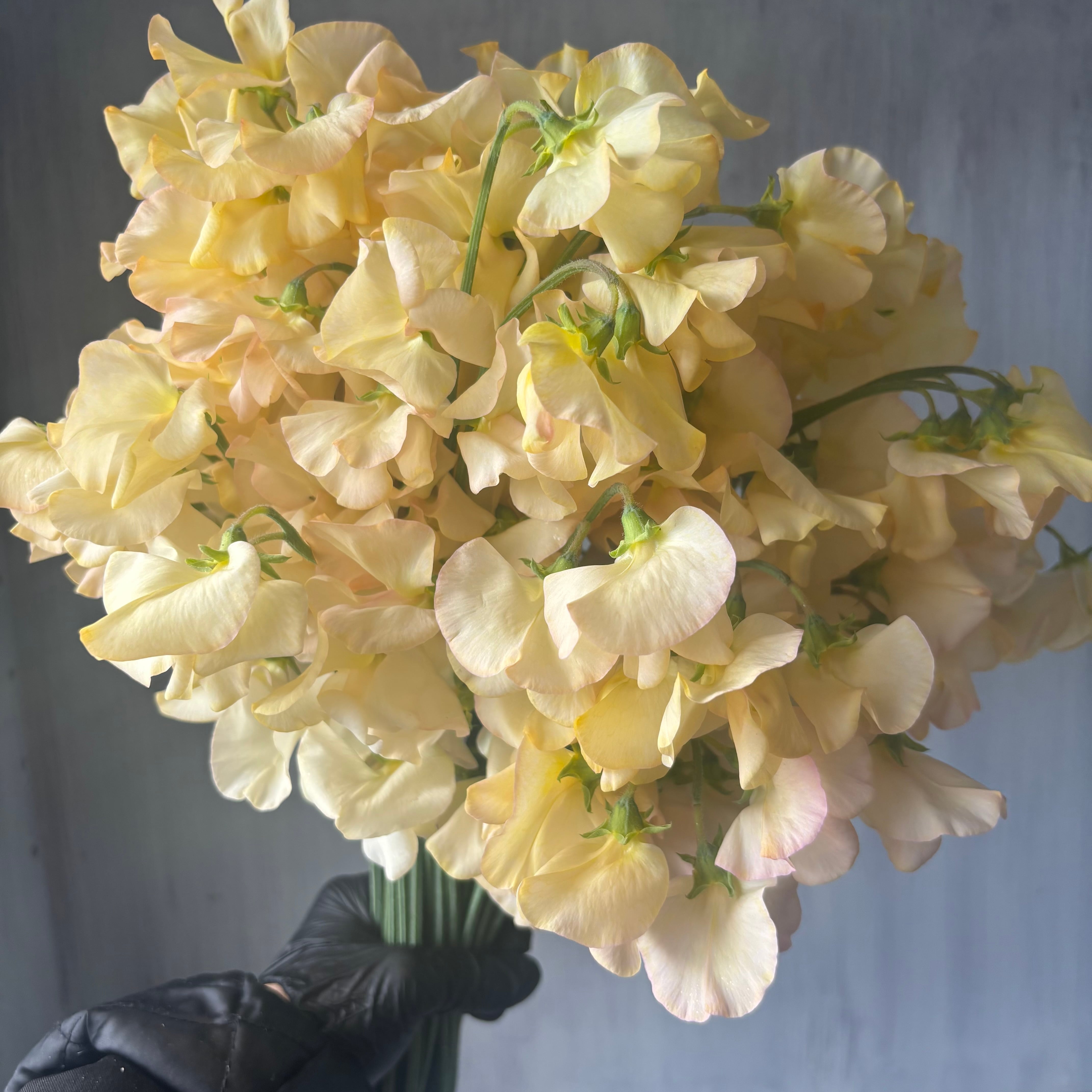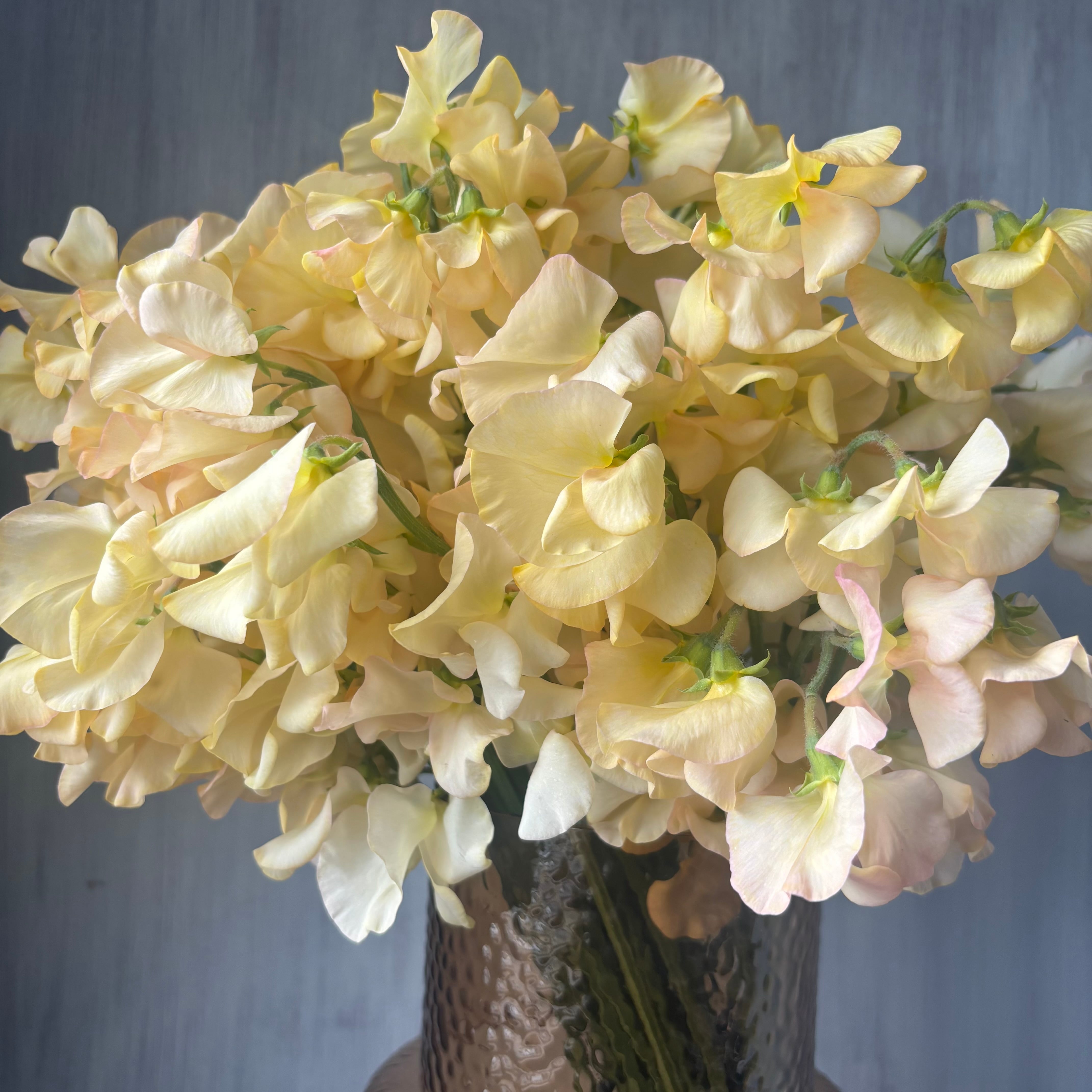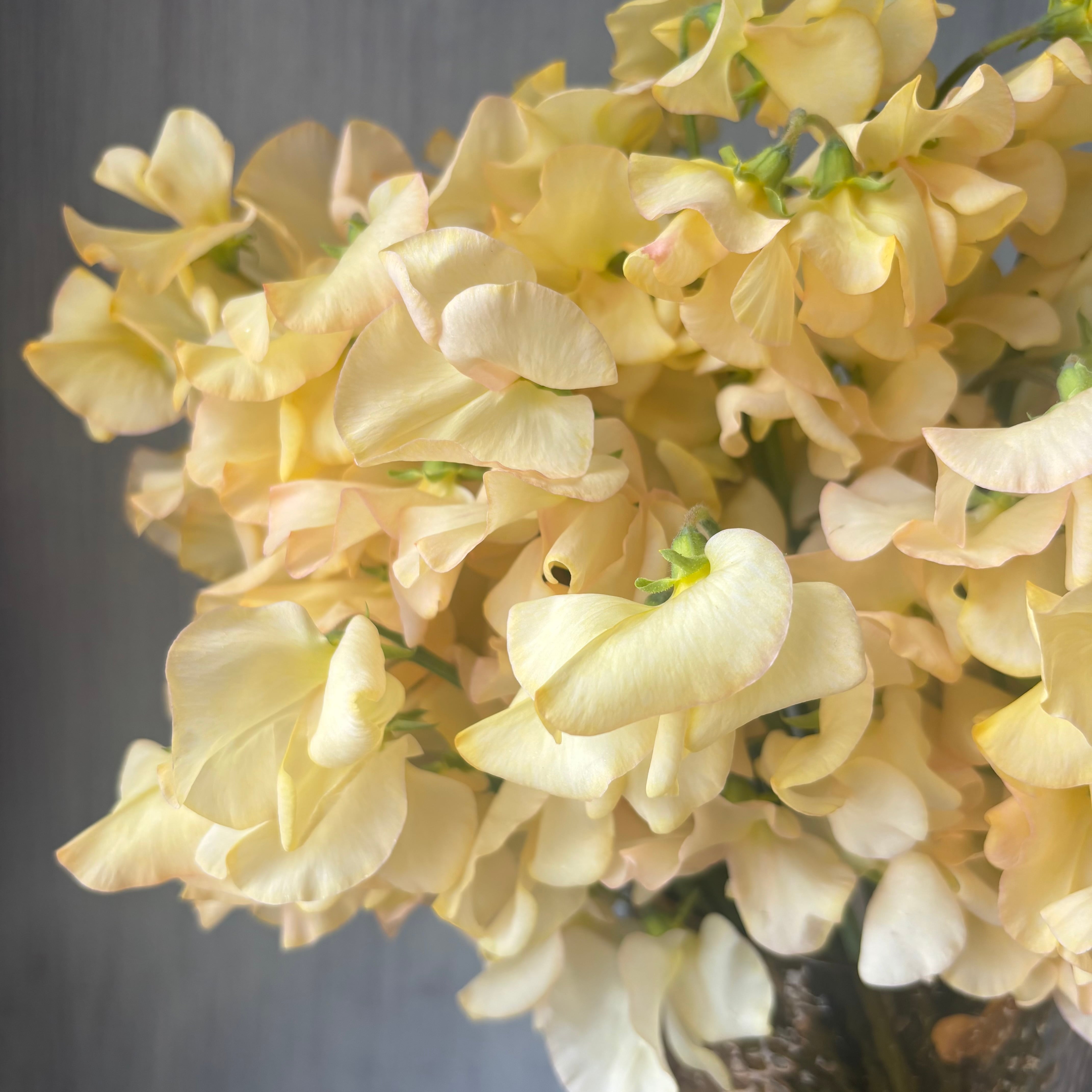 とにかく香り高い!スイートピー特有の甘い香りというよりも、すっきりした爽やかな香りです。クリームイエローの花もさわやかですね。