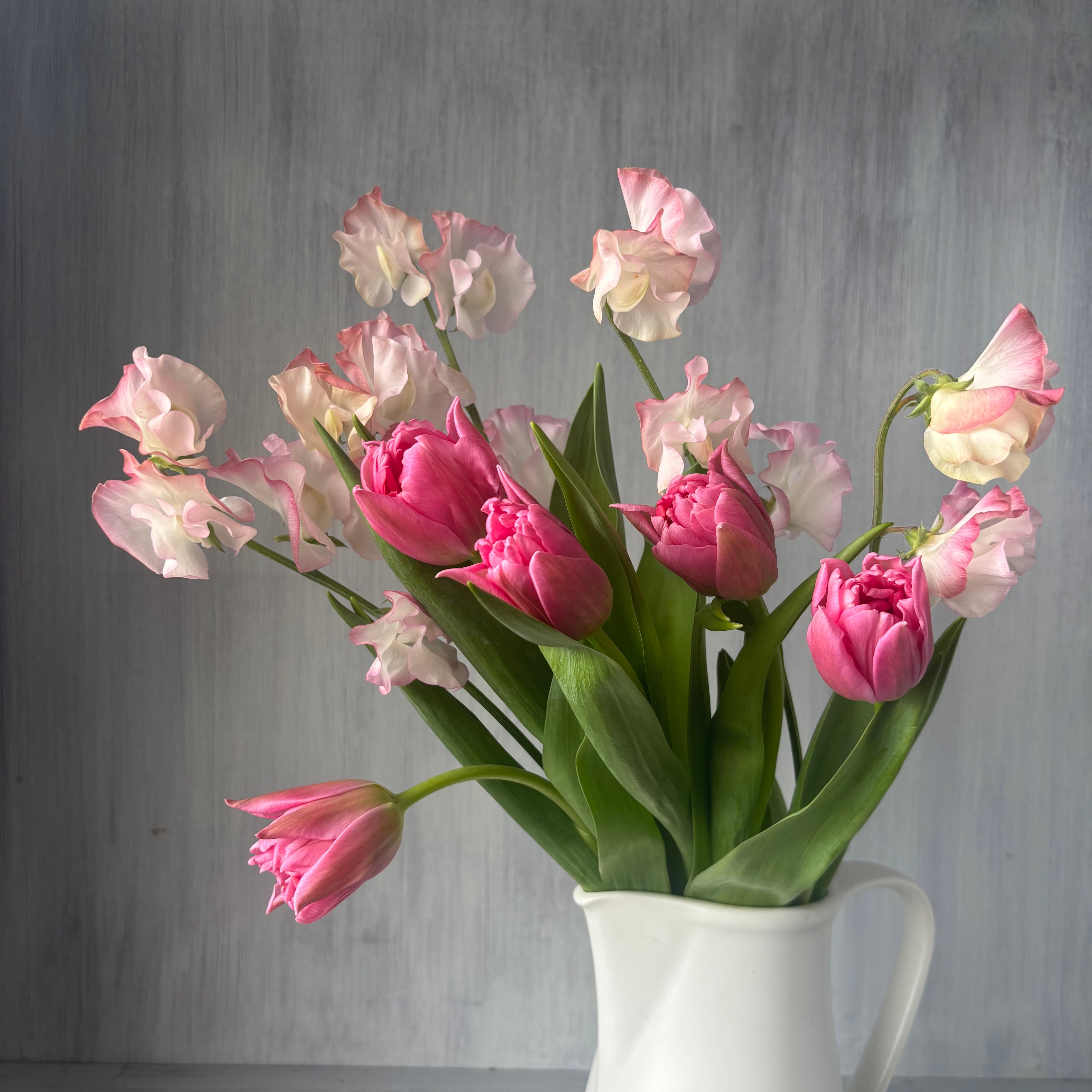 チューリップとそれにぴったりなスイートピーを一緒に飾ってみませんか?