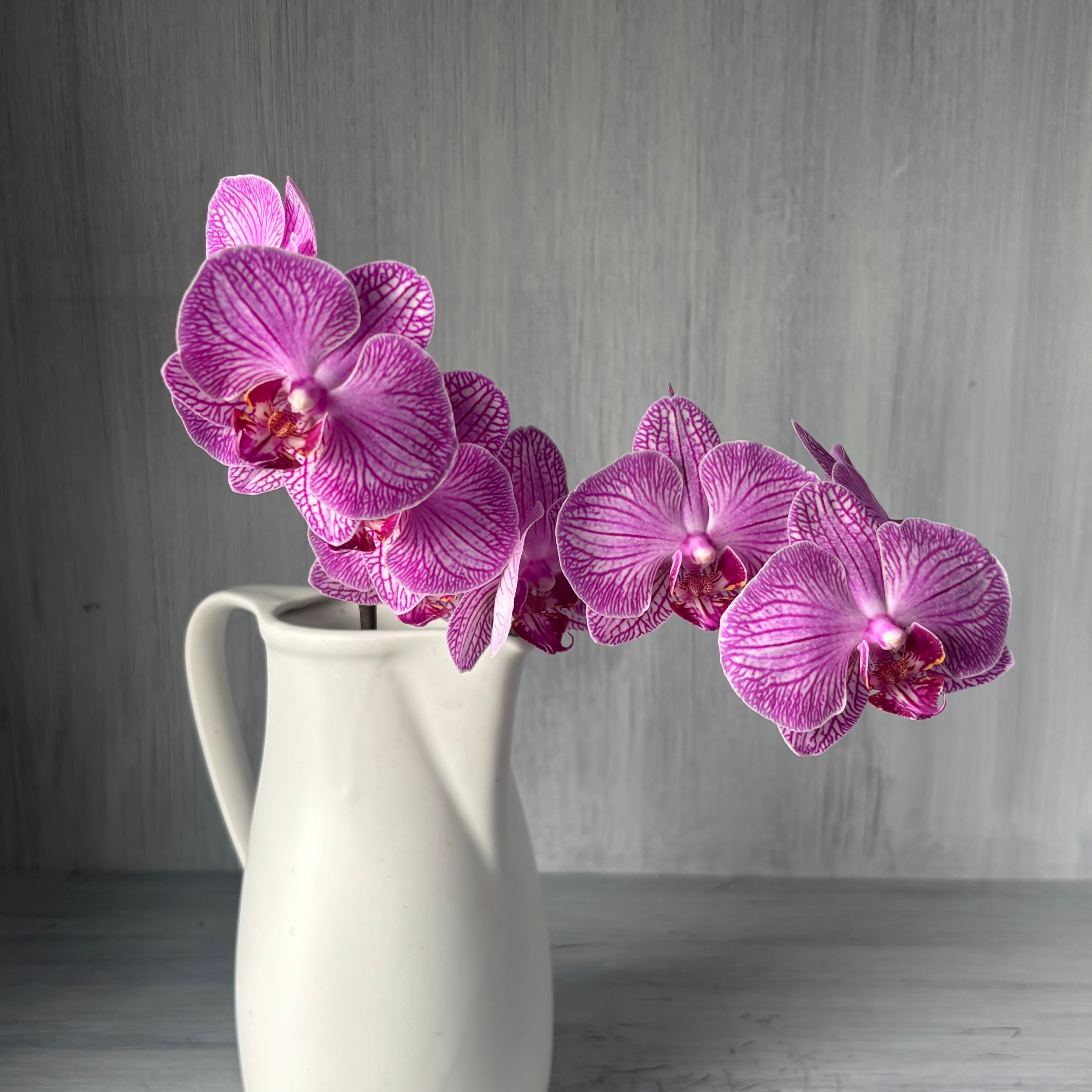 ミディファレ(胡蝶蘭の中輪)です。光の角度によってパープルがかったピンクに見えます。