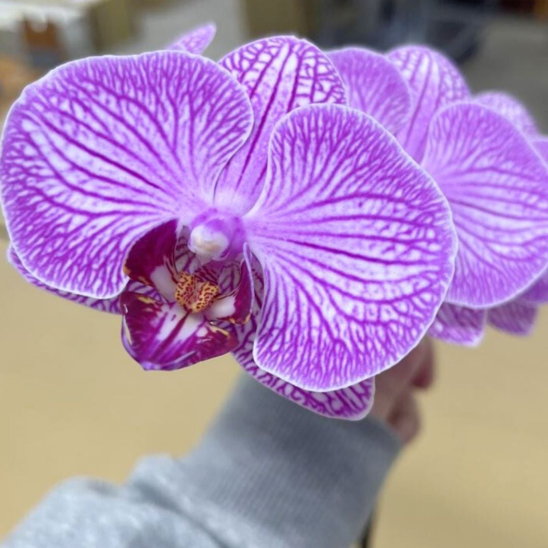 胡蝶蘭は花の大きさによって、大きく2種類に分けられて呼ばれています。 それが、「大輪」と呼ばれるものと、「ミディ」と呼ばれるものです。 大輪胡蝶蘭は、花弁の大きさが10~15cm程あるのにたいして、ミディ胡蝶蘭は、花弁の大きさが6~9cm程あります。