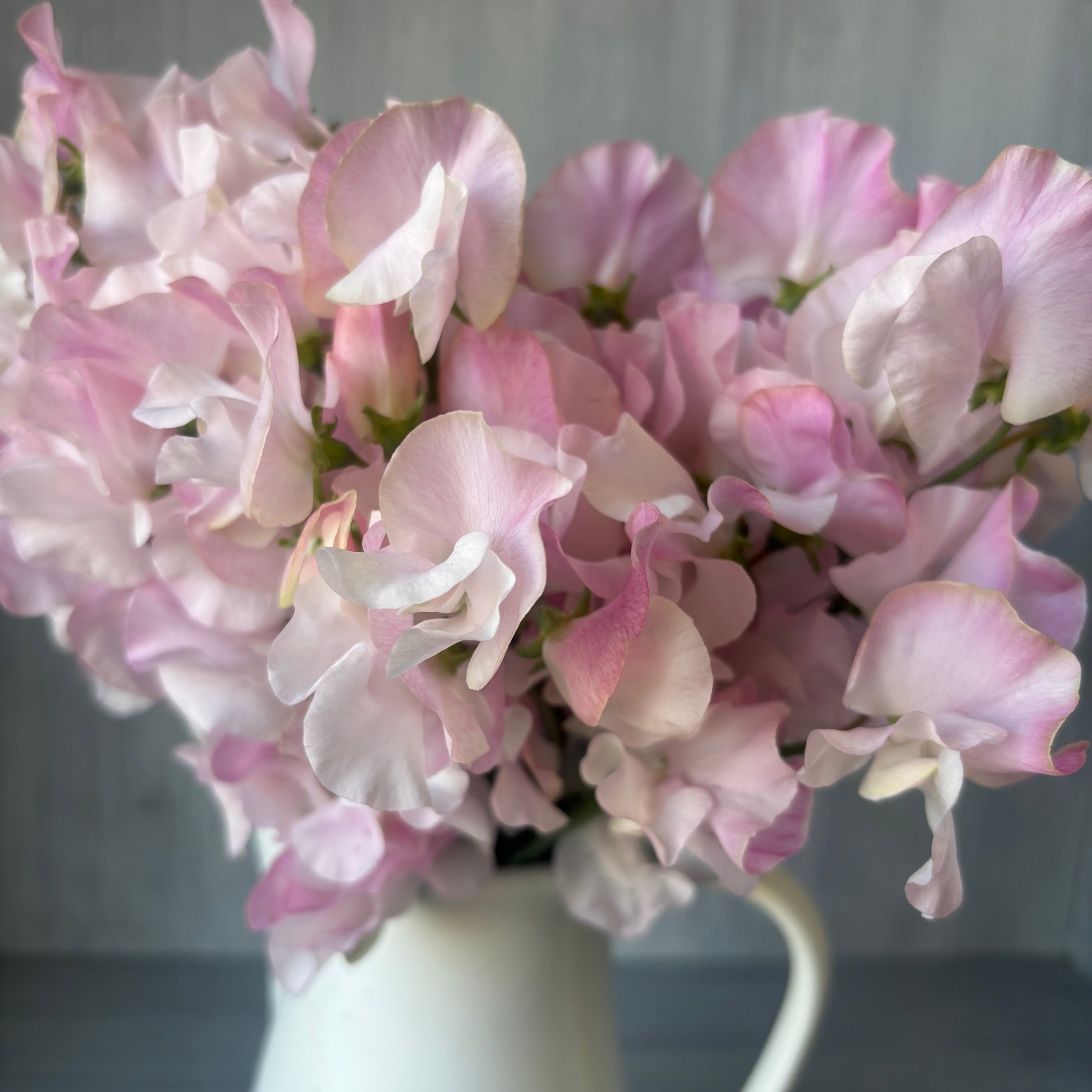 その蝶が舞うような軽やかな花姿から、スイトピーの花言葉は『門出』。明るい気分にさせてくれる素敵な香りと柔らかな色合いは贈り物にもおすすめです。