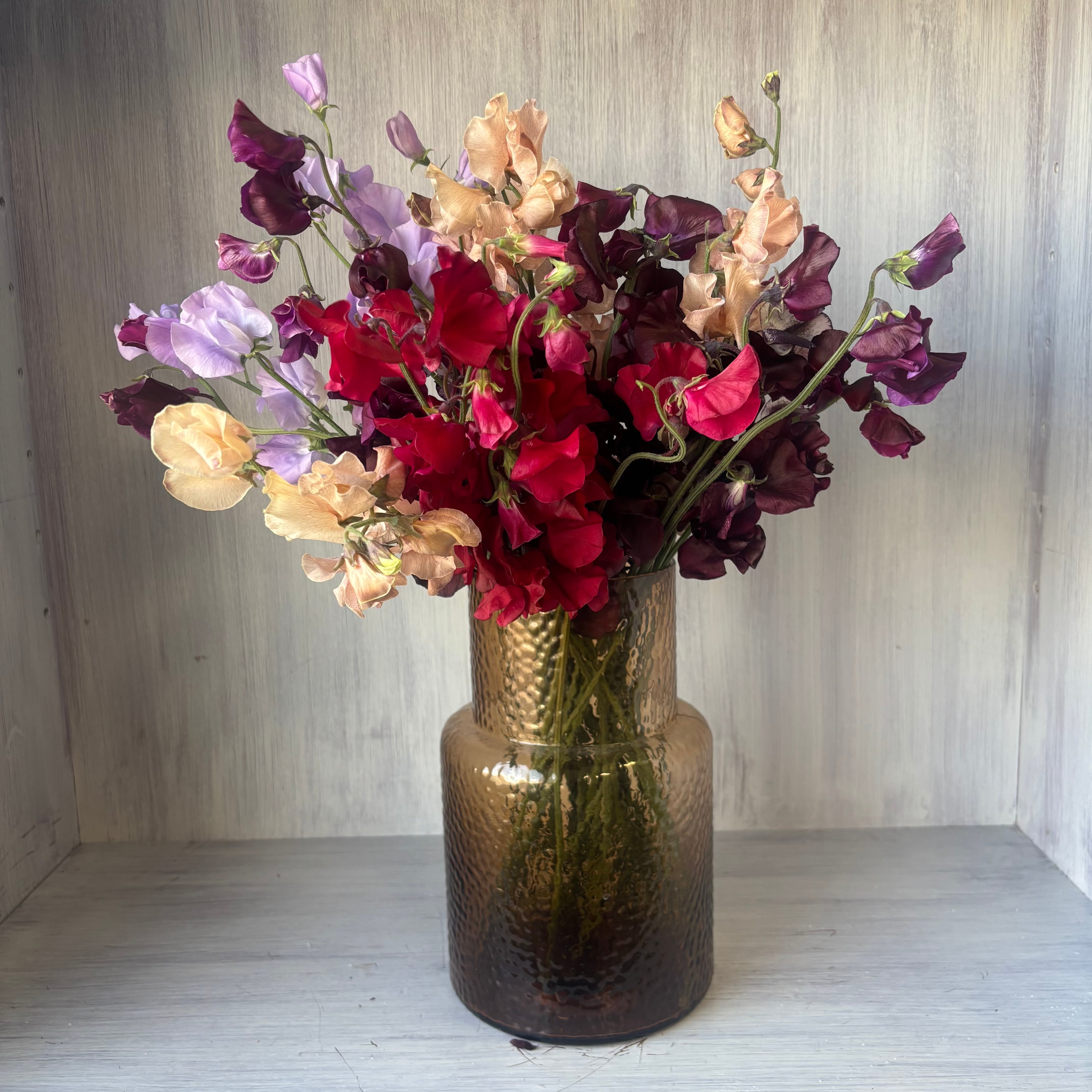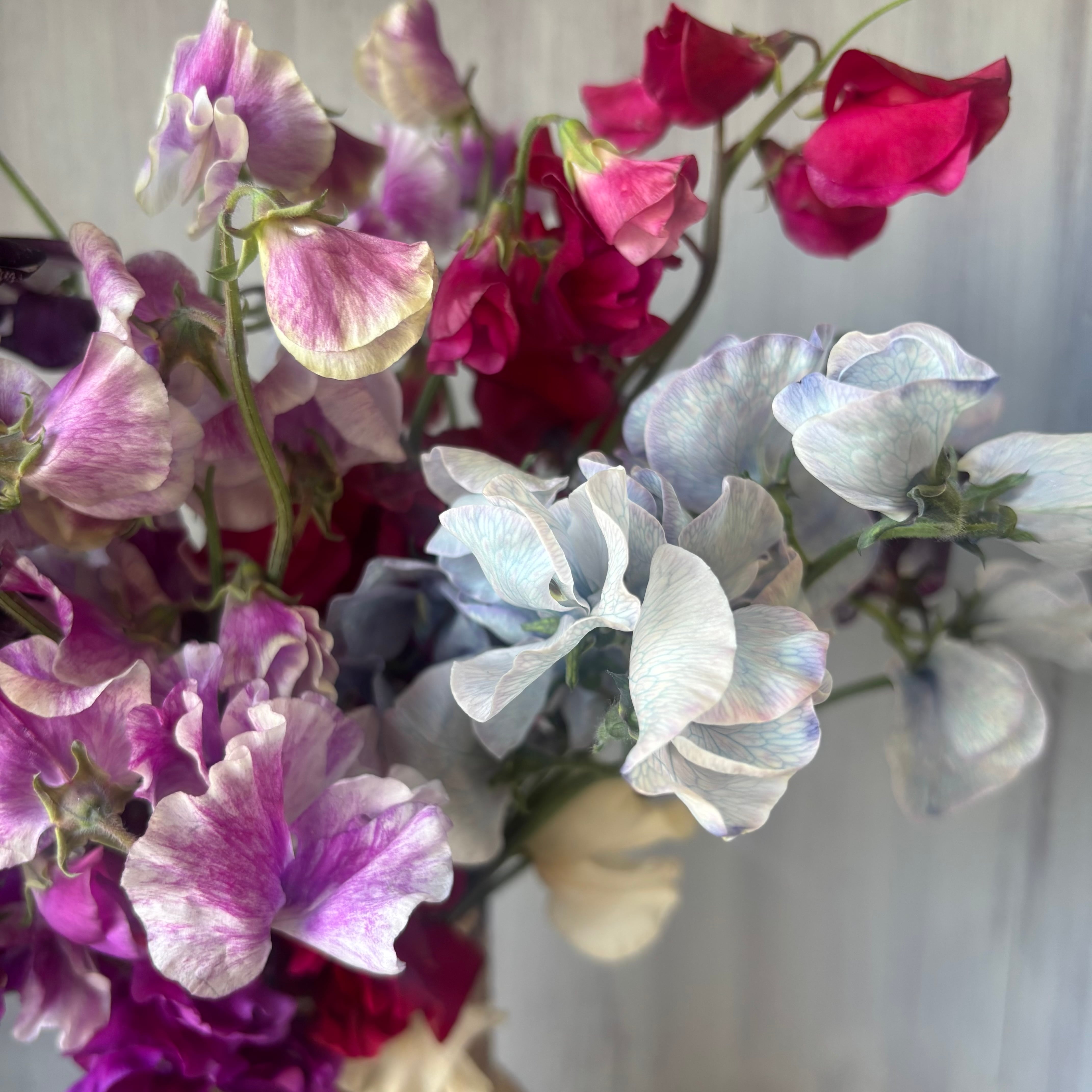 原産地はイタリア・シチリア島で、ヨーロッパではスイトピーをベッドルームなどに飾り、ルームフレグランスとして香りを楽しむそう。