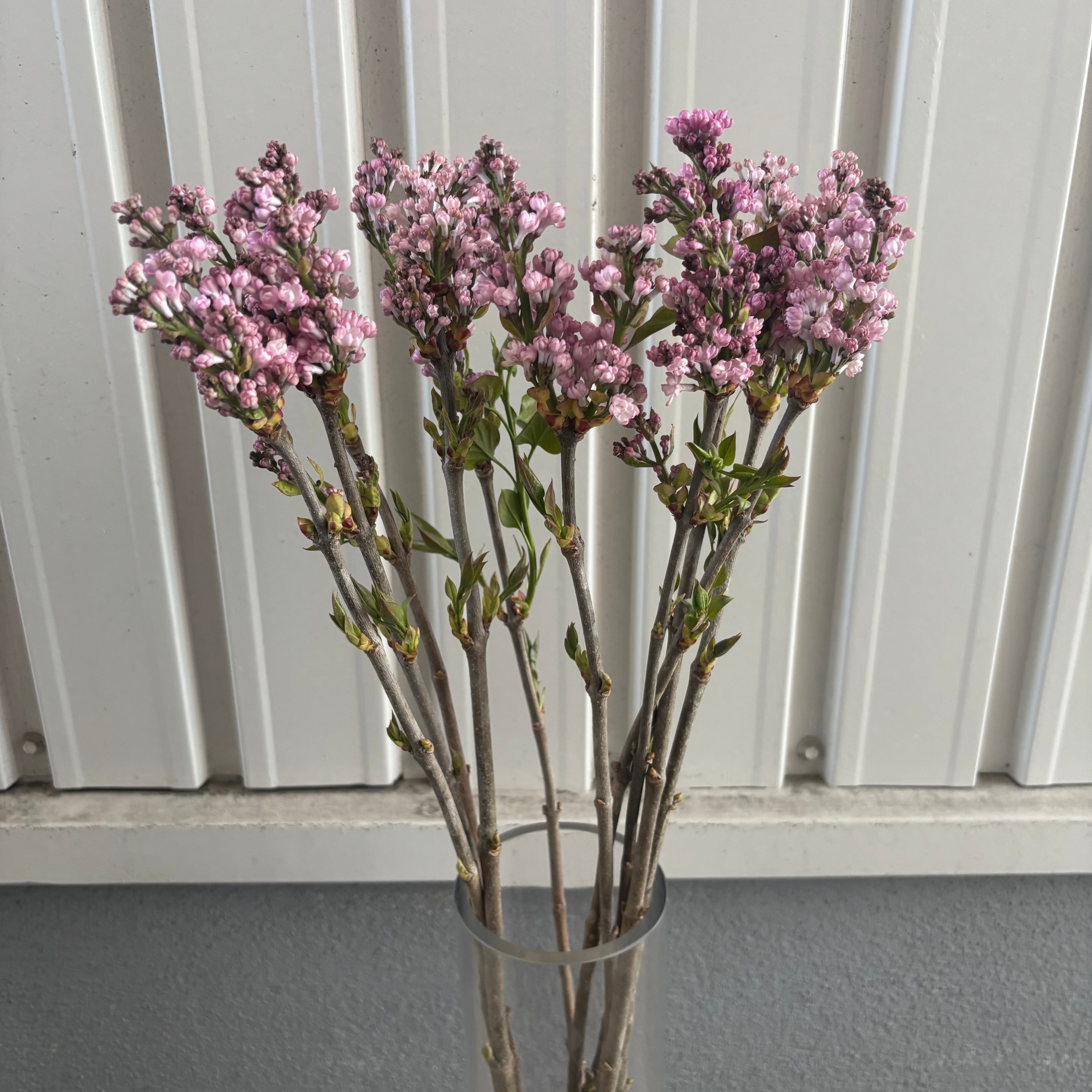様々な色や咲き方の品種が存在するライラックですが、今回ご紹介するのは八重咲きの品種。一重よりも房全体にボリュームがあり、また、花弁が重なることで透明感あふれる淡い花色がより一層際立ちます。光の当たり具合によって淡い紫にもライトピンクにも見える、なんともいえない絶妙な色味です。