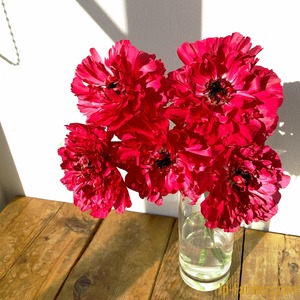 切れ込みの入った花びらとアネモネのような黒い花芯が個性的でおすすめです。