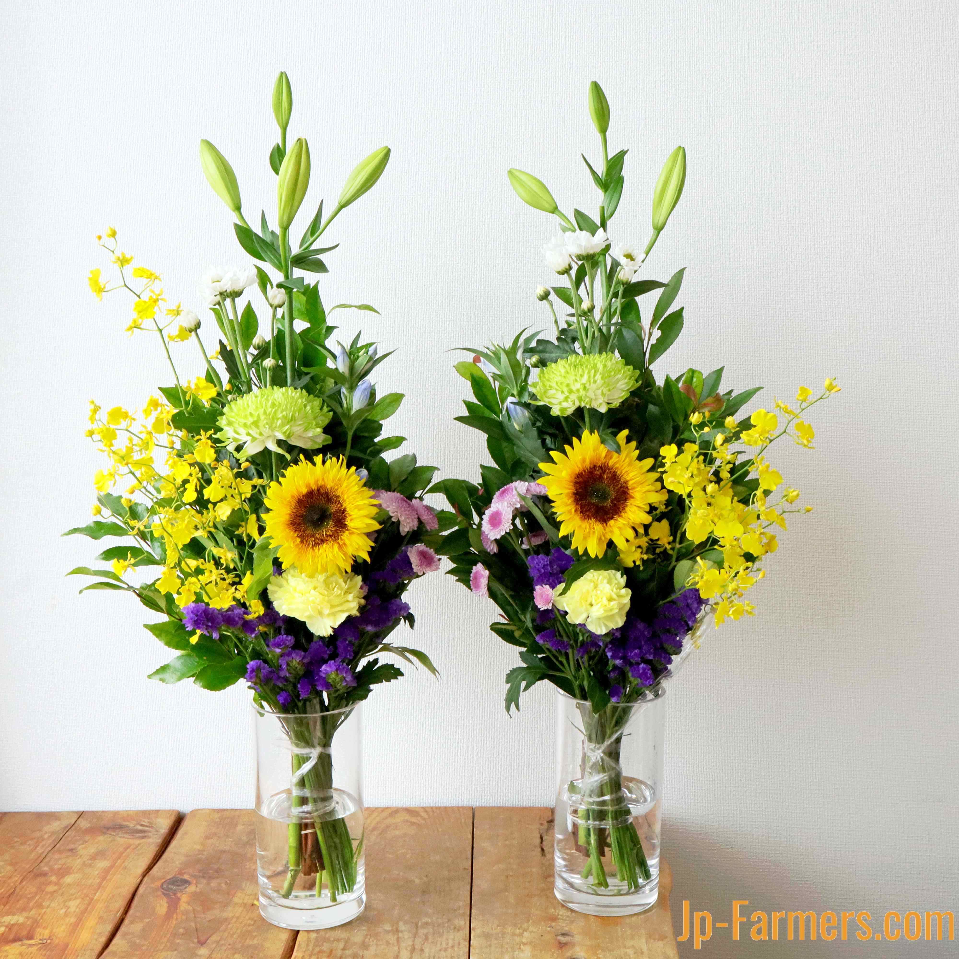 お墓参りへ行こう♪♪ 八重のヒマワリがかわいい お墓参り花 (1対)