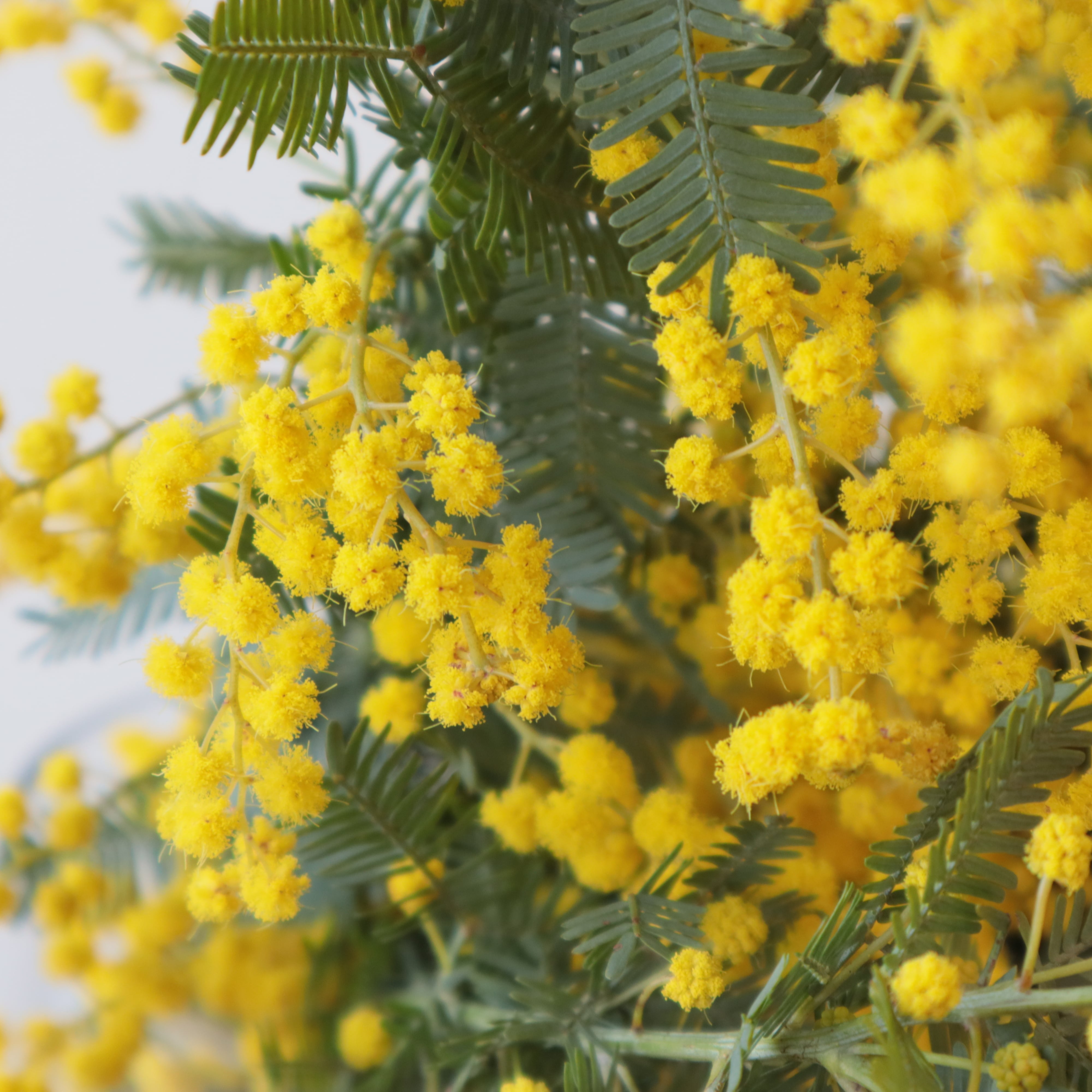 ミモザ(アカシア)は切花として、リースとして、鉢物として、人気の高い春のお花です。近年ではご自身でもリース作りをしたりと、このミモザのきれいな時期を楽しんでいる方が増えてきています。
