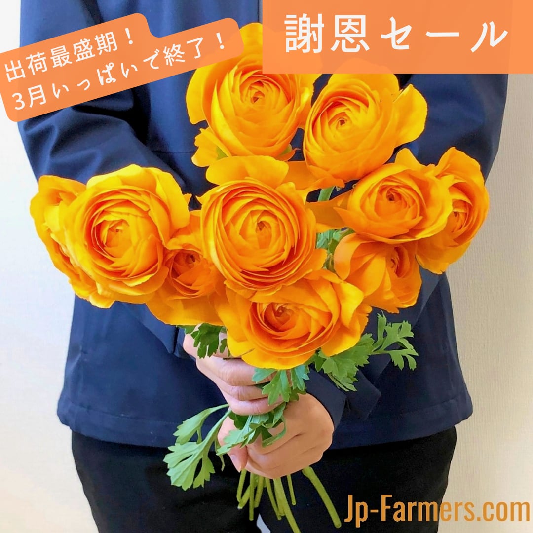出荷最盛期を迎える ラナンキュラス オレンジ 20本 フラワースピリット