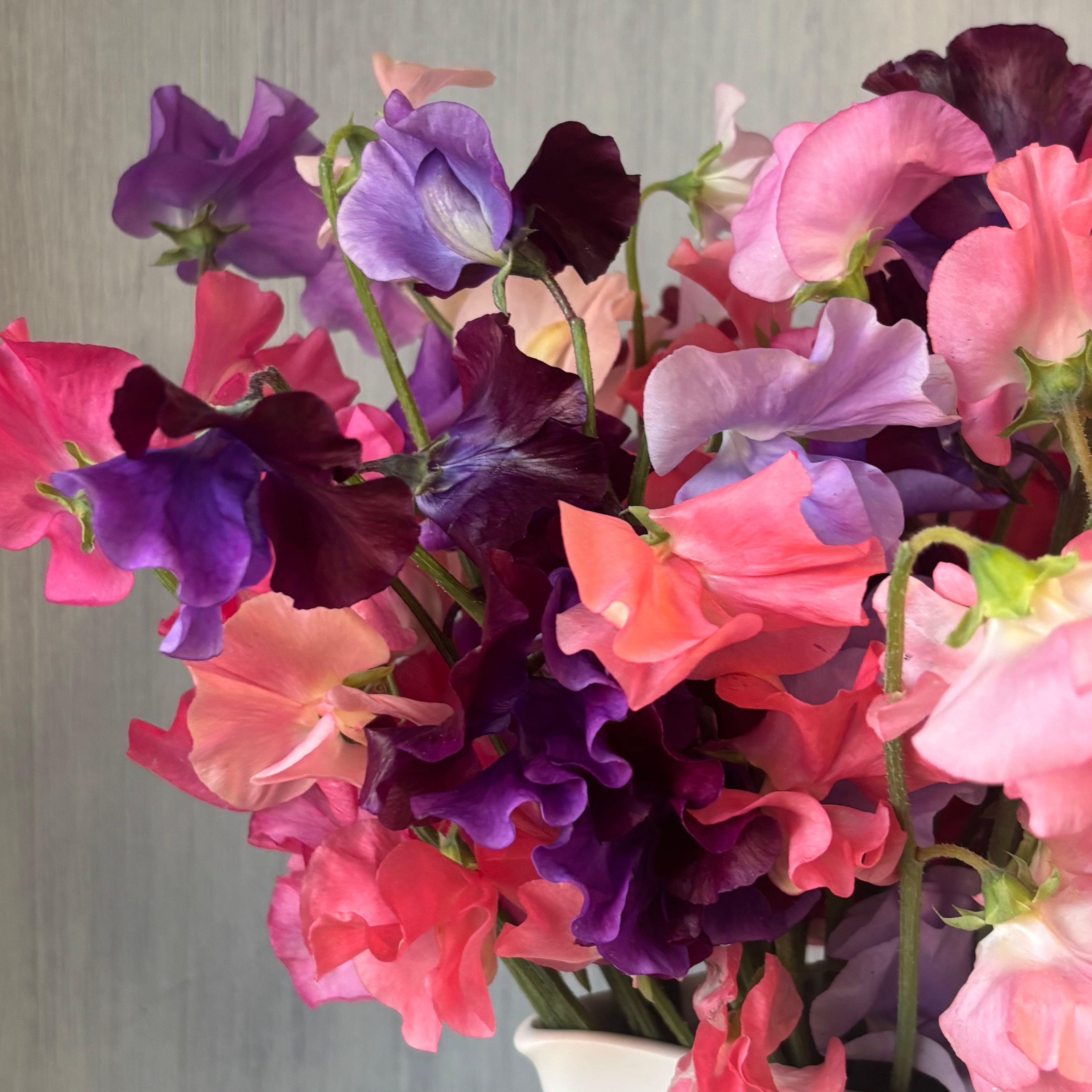 原産地はイタリア・シチリア島で、ヨーロッパではスイトピーをベッドルームなどに飾り、ルームフレグランスとして香りを楽しむそう。