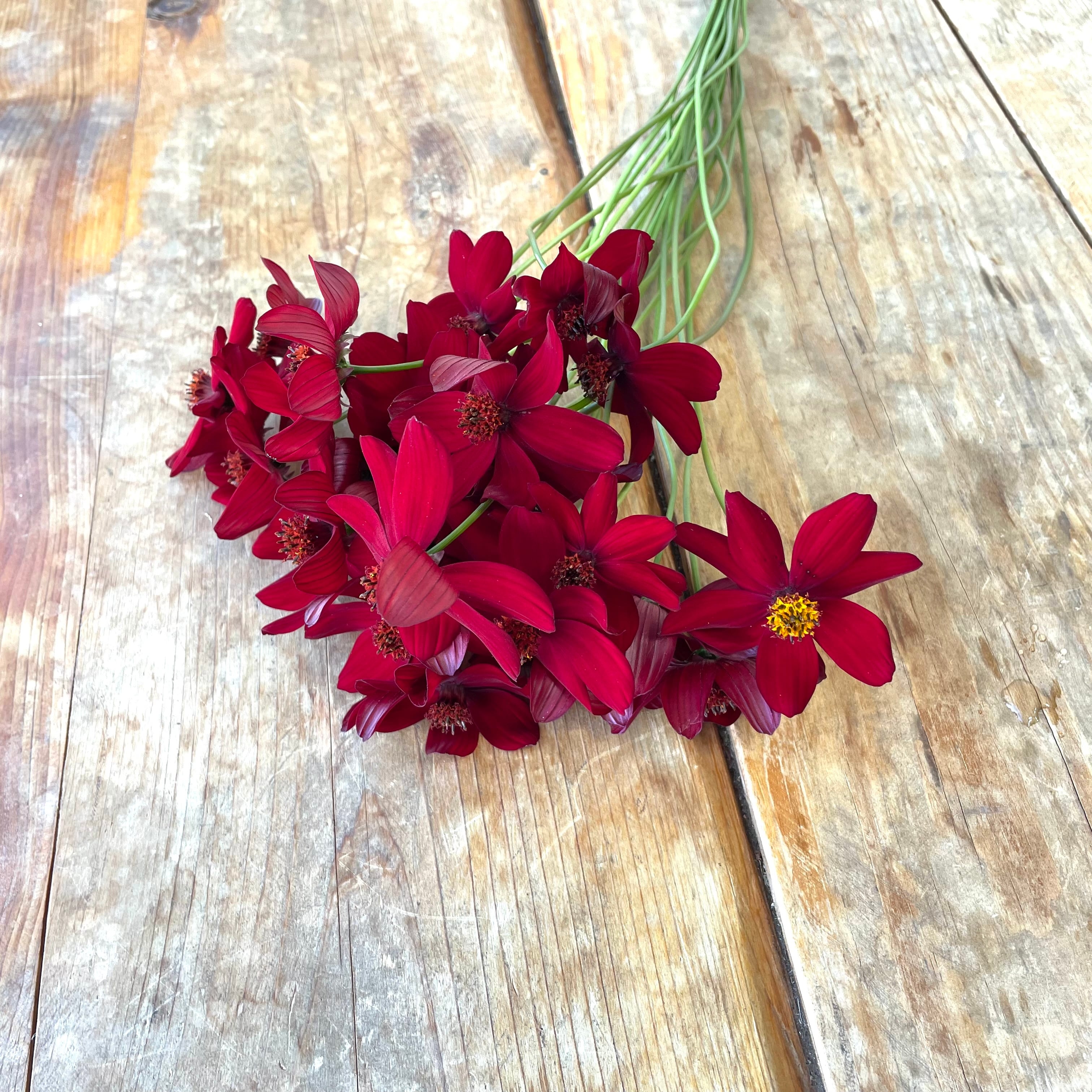 聖夜のチョコレートコスモス ”ノエルレッド” 大輪ミニサイズ25本
