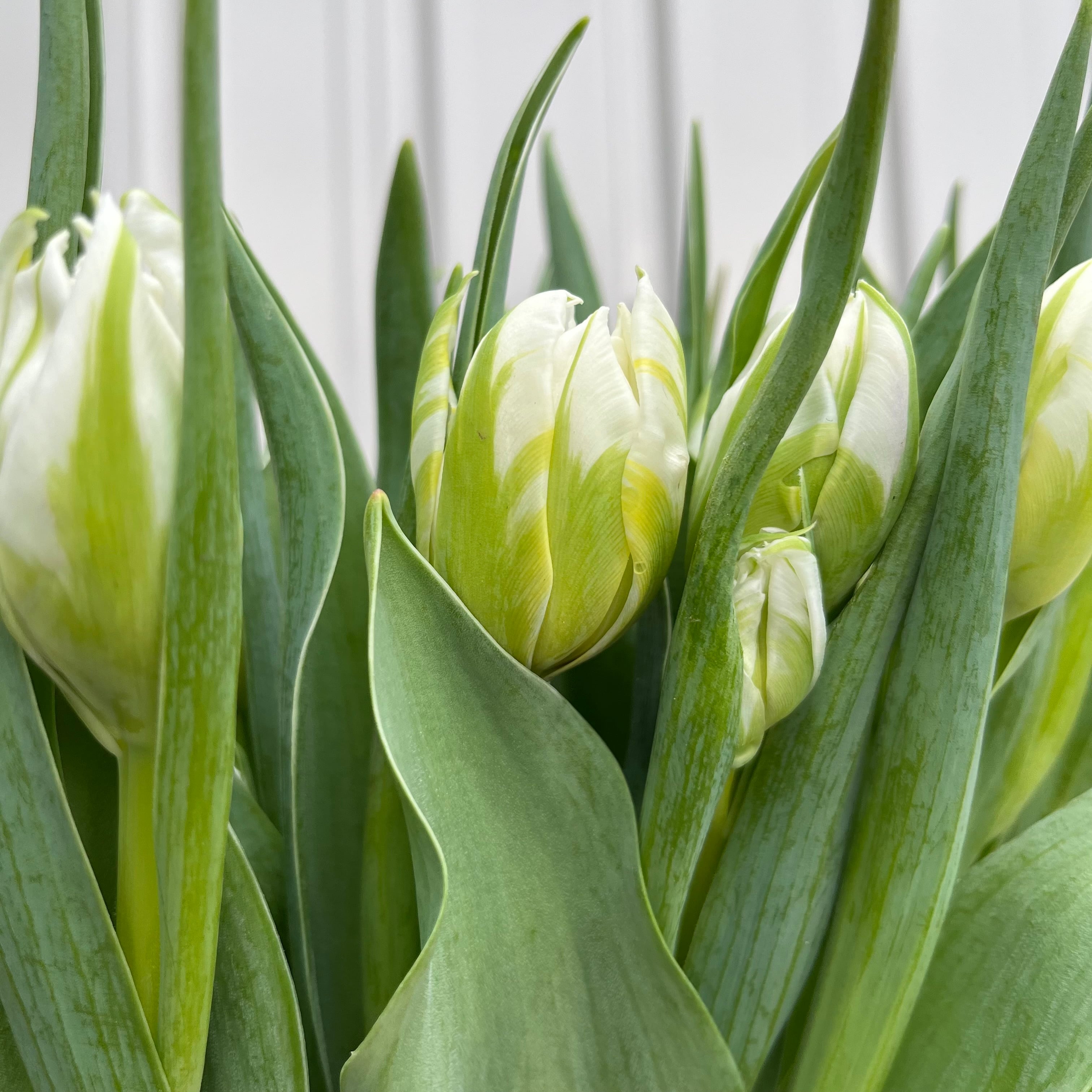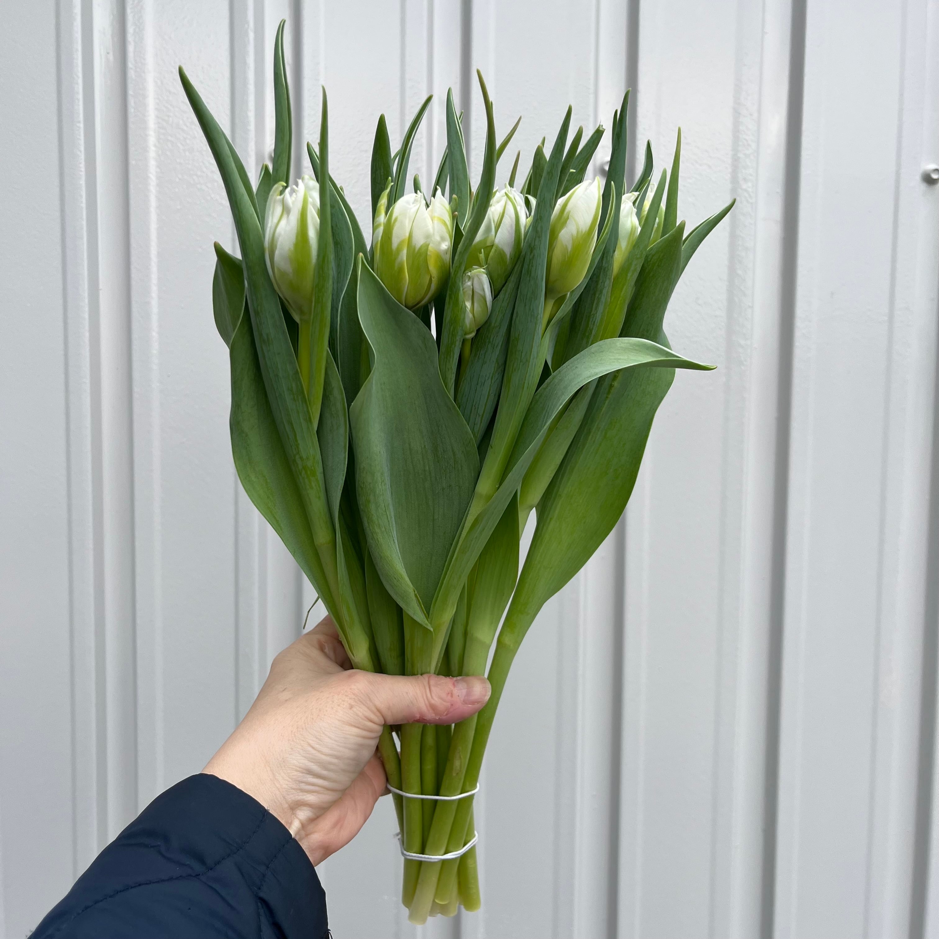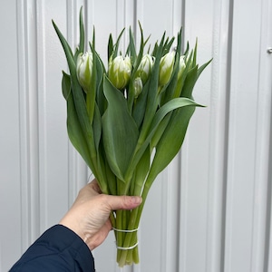 チューリップの白は実は、貴重な色目なんです。今回は美しい白で八重咲きで素敵な花弁展開になってきますよ。