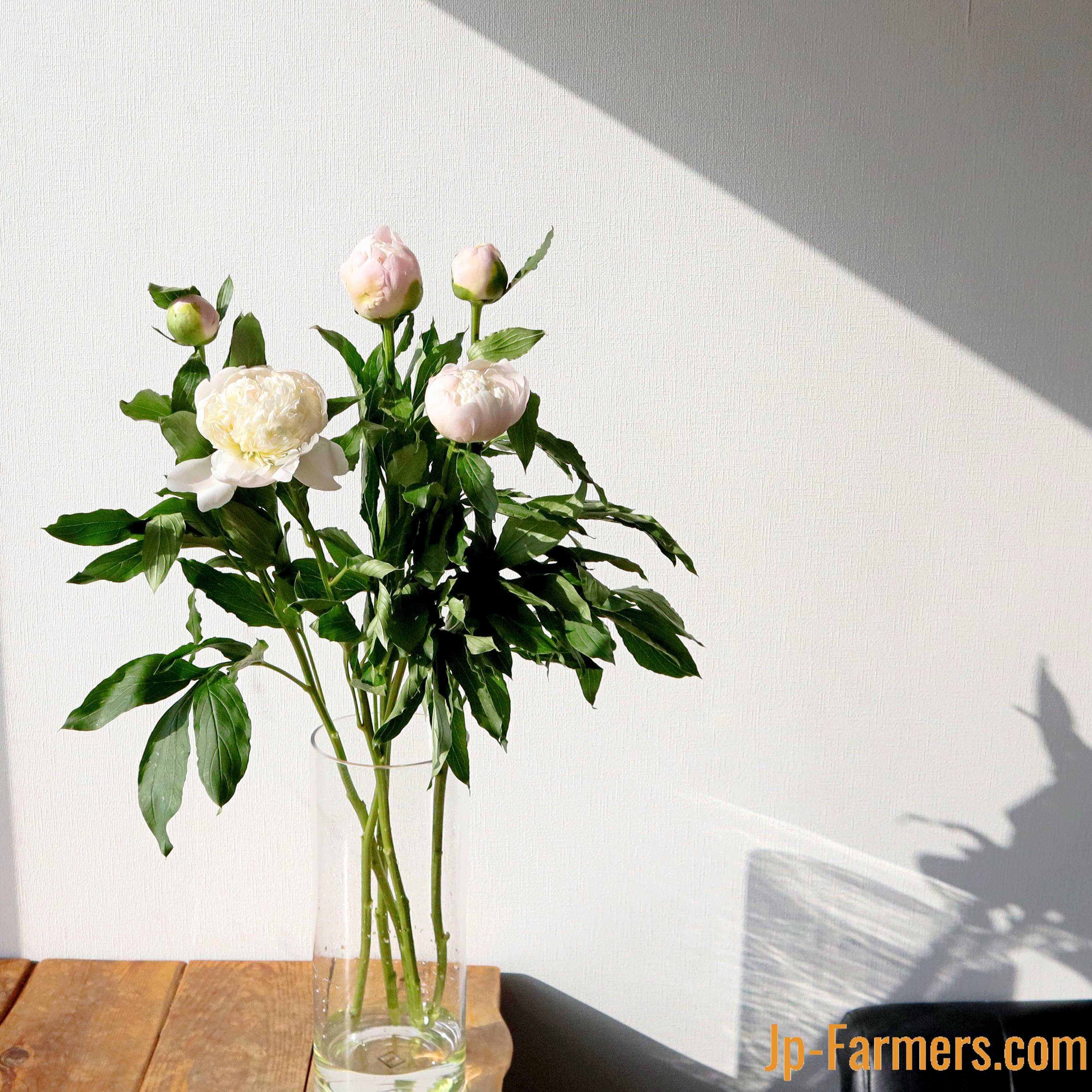 花瓶の中に雑菌が多いと茎が詰まり水が揚がりにくくなり、芍薬が枯れてしまう原因になります。花瓶は食器用洗剤できれいに洗ったものを使用しましょう。