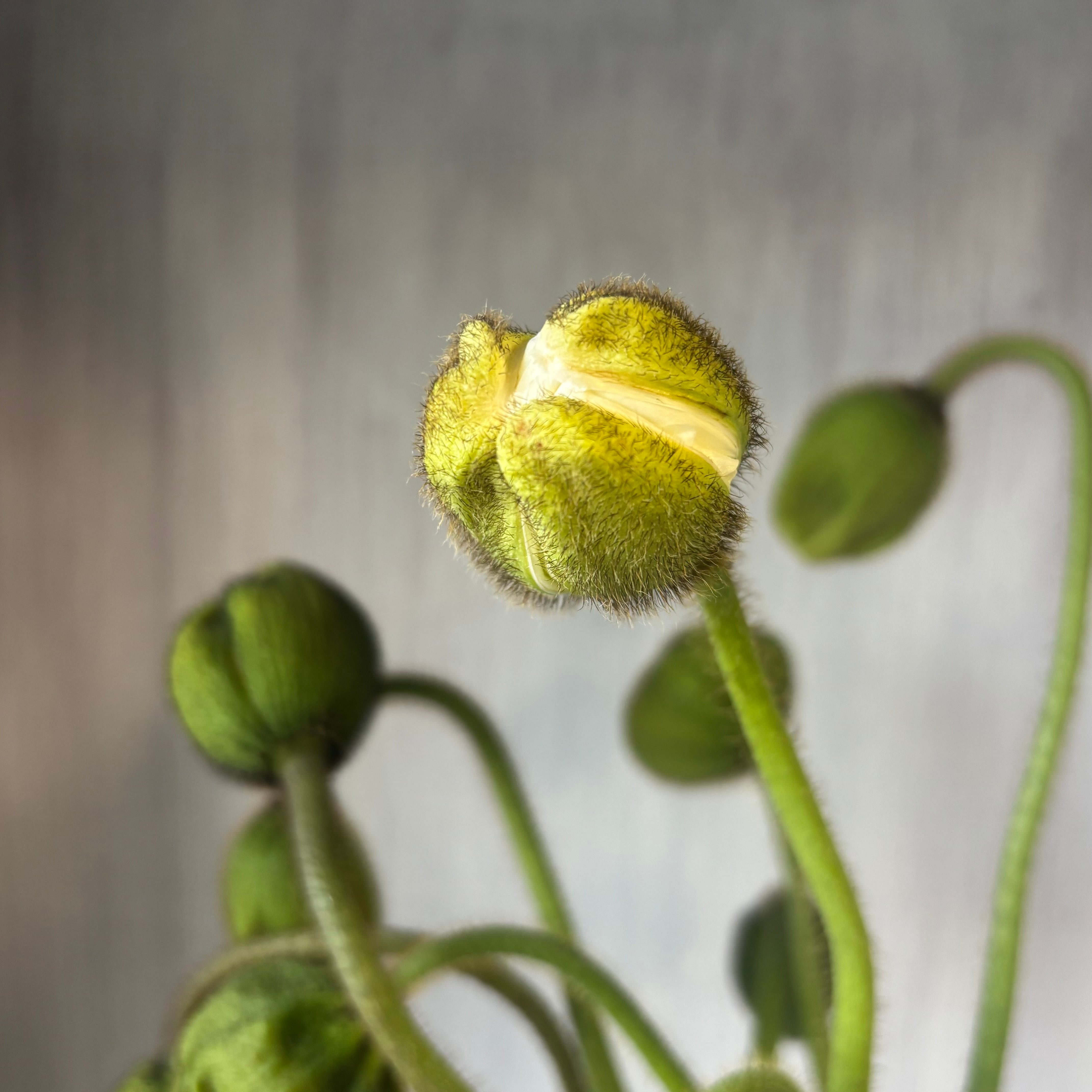 起毛の殻に覆われた小さな蕾から一気に開き、何色のお花かは咲いてからのお楽しみ♪ なサプライス性のあるお花です。