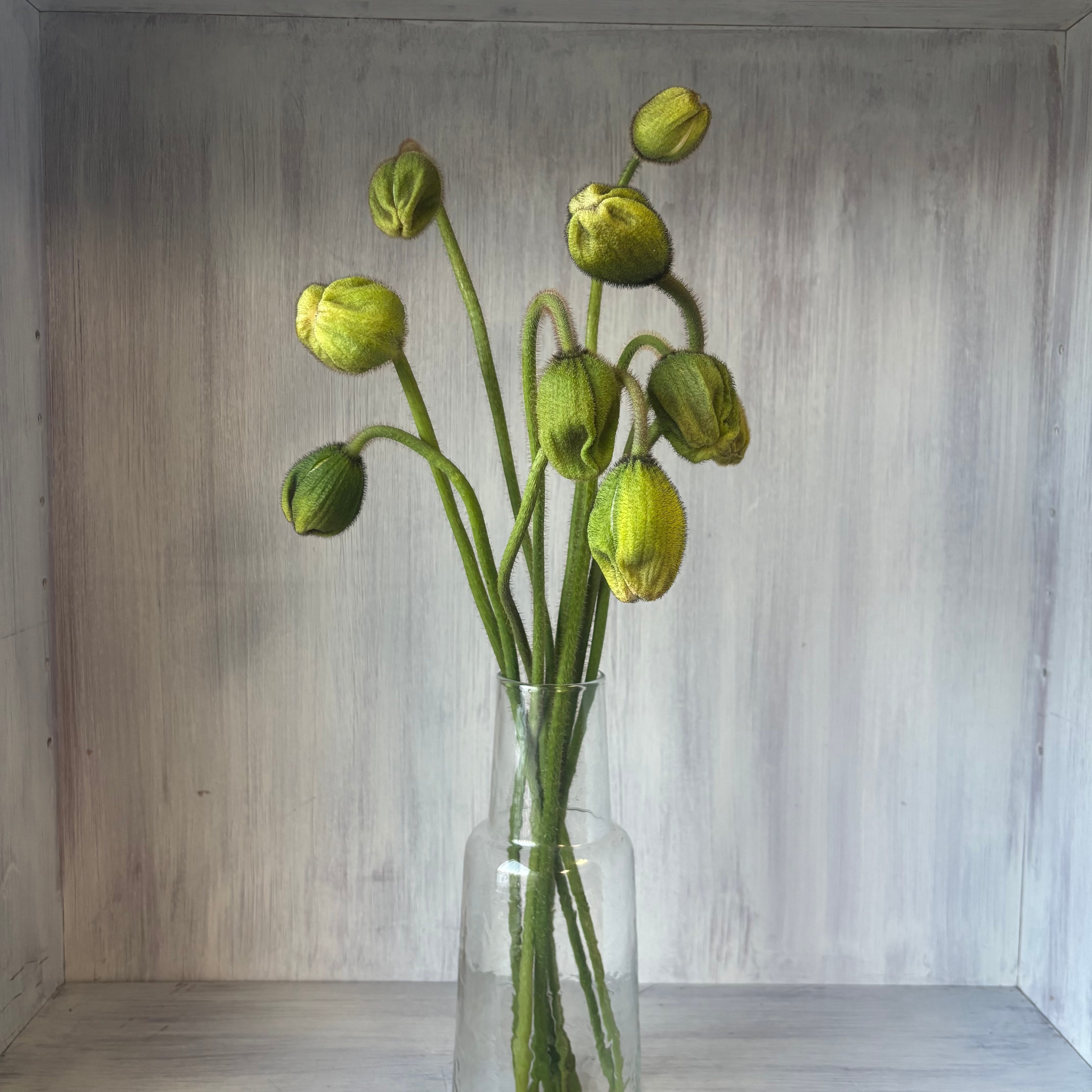 下向きだった蕾が花首を持ち上げ、動物のように動きながら開花するポピー。大輪品種でご紹介です。
