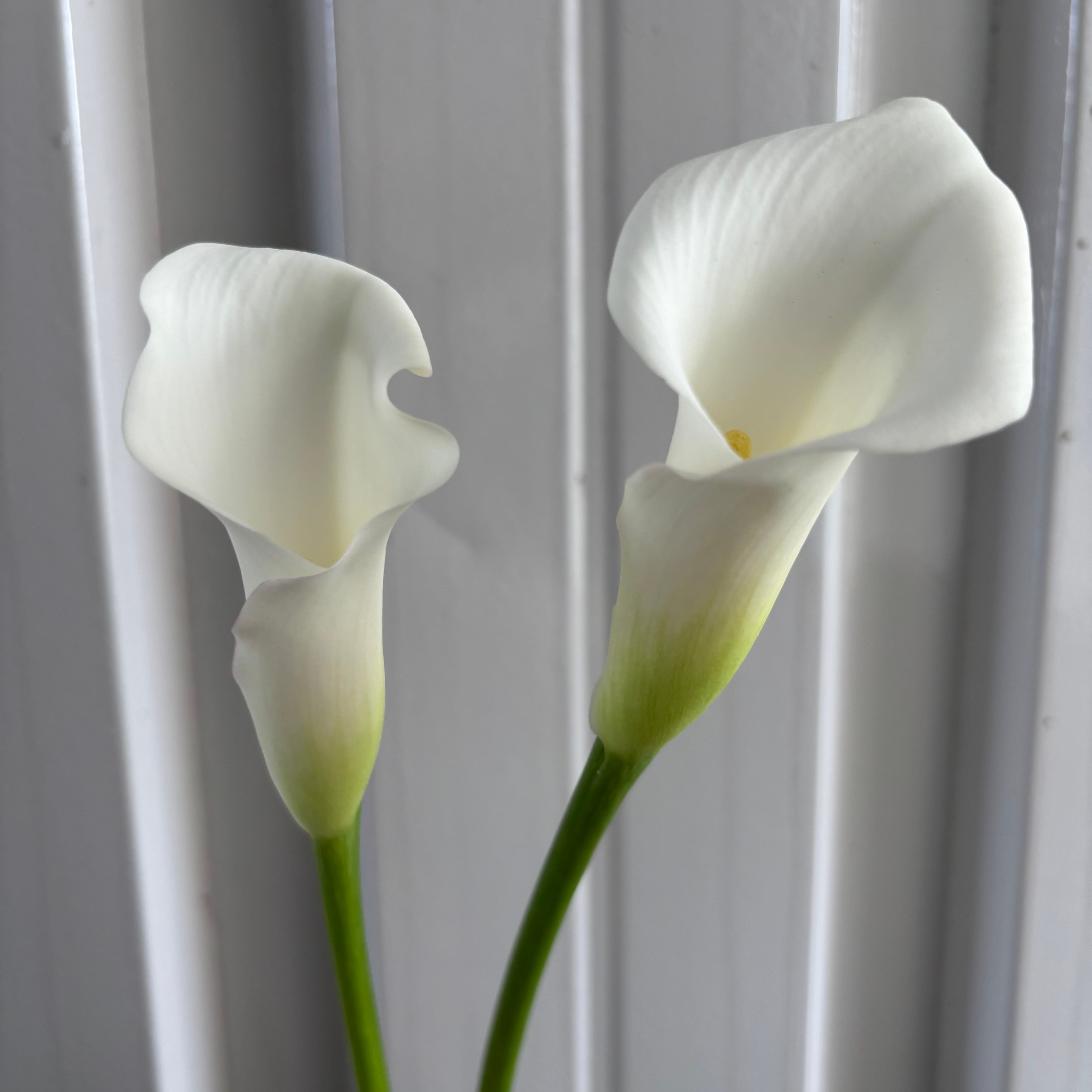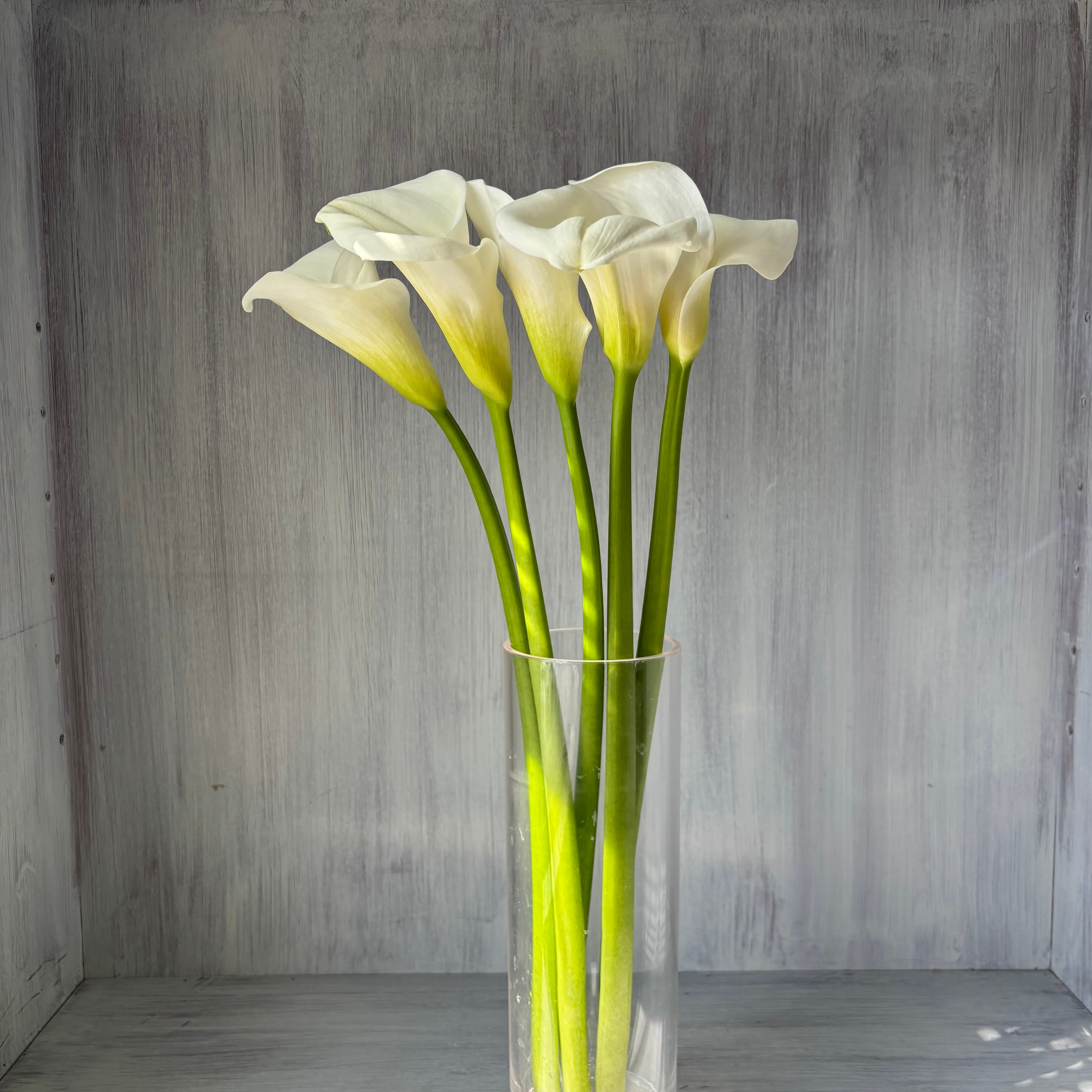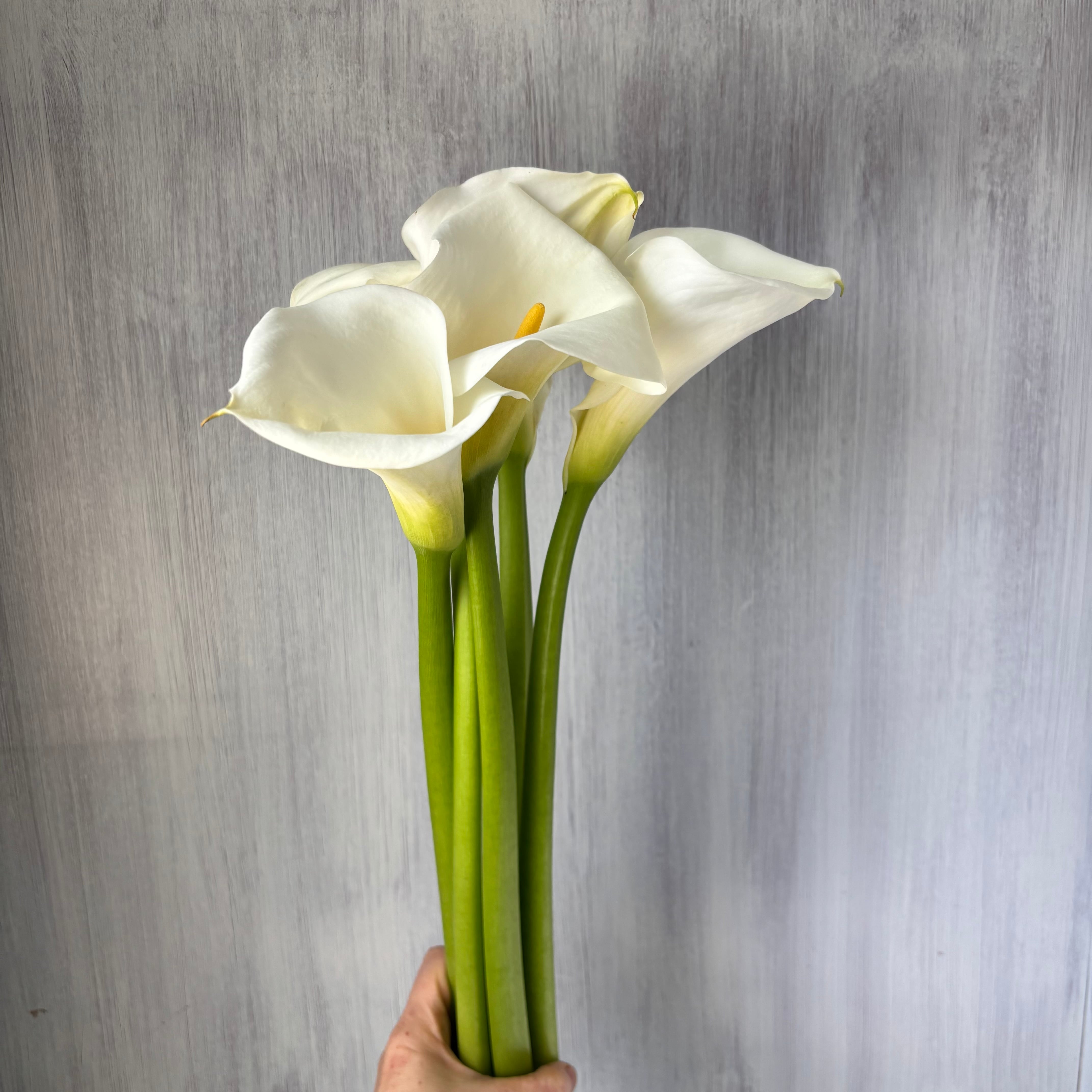 スタイリッシュさが際立つ純白のカラーが登場です。今回ご紹介は花形大きく、茎太め、長さしっかりある、とても華やかで使いやすいサイズです。