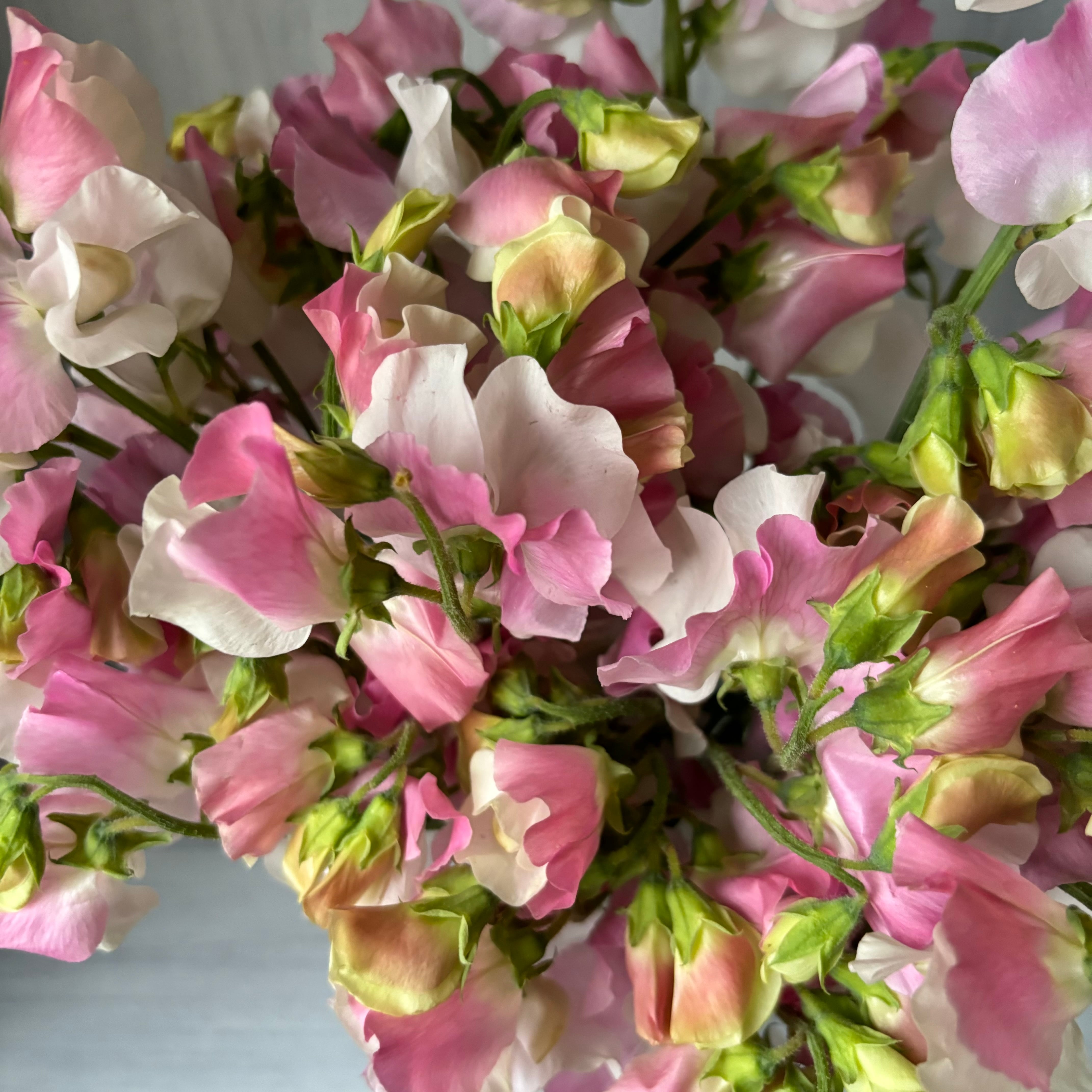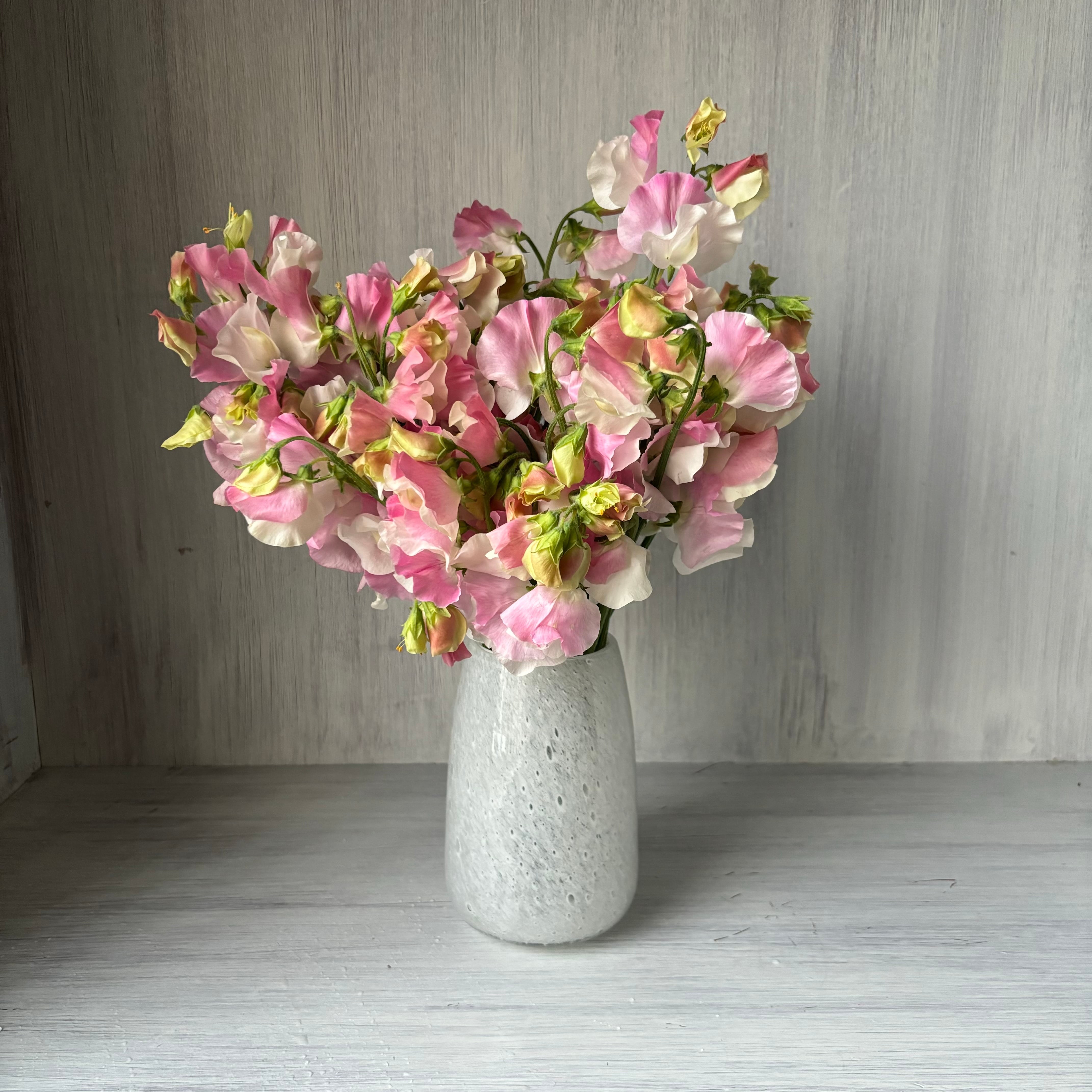 その蝶が舞うような軽やかな花姿から、スイトピーの花言葉は『門出』。明るい気分にさせてくれる素敵な香りと柔らかな色合いは贈り物にもおすすめです。