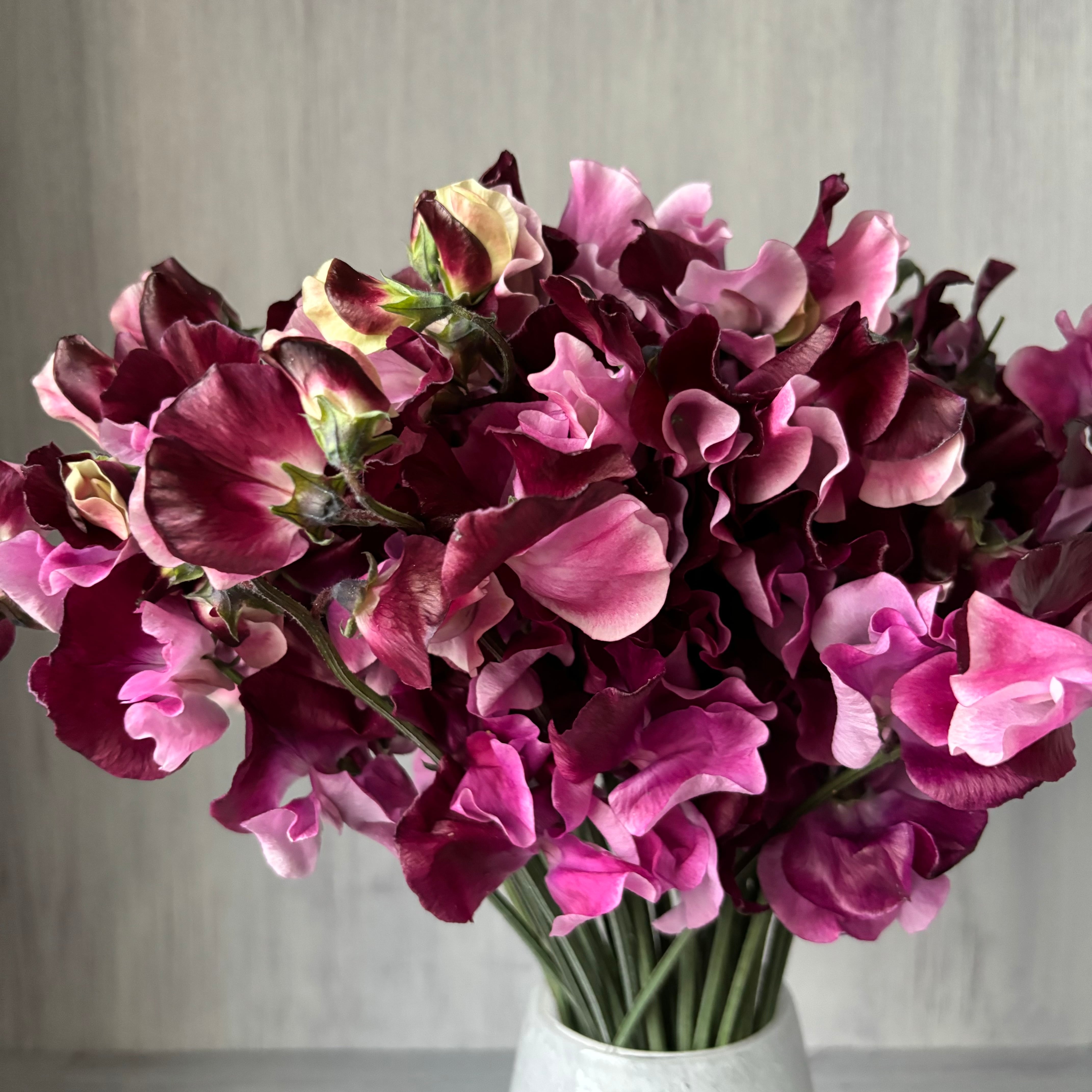 原産地はイタリア・シチリア島で、ヨーロッパではスイトピーをベッドルームなどに飾り、ルームフレグランスとして香りを楽しむそう。