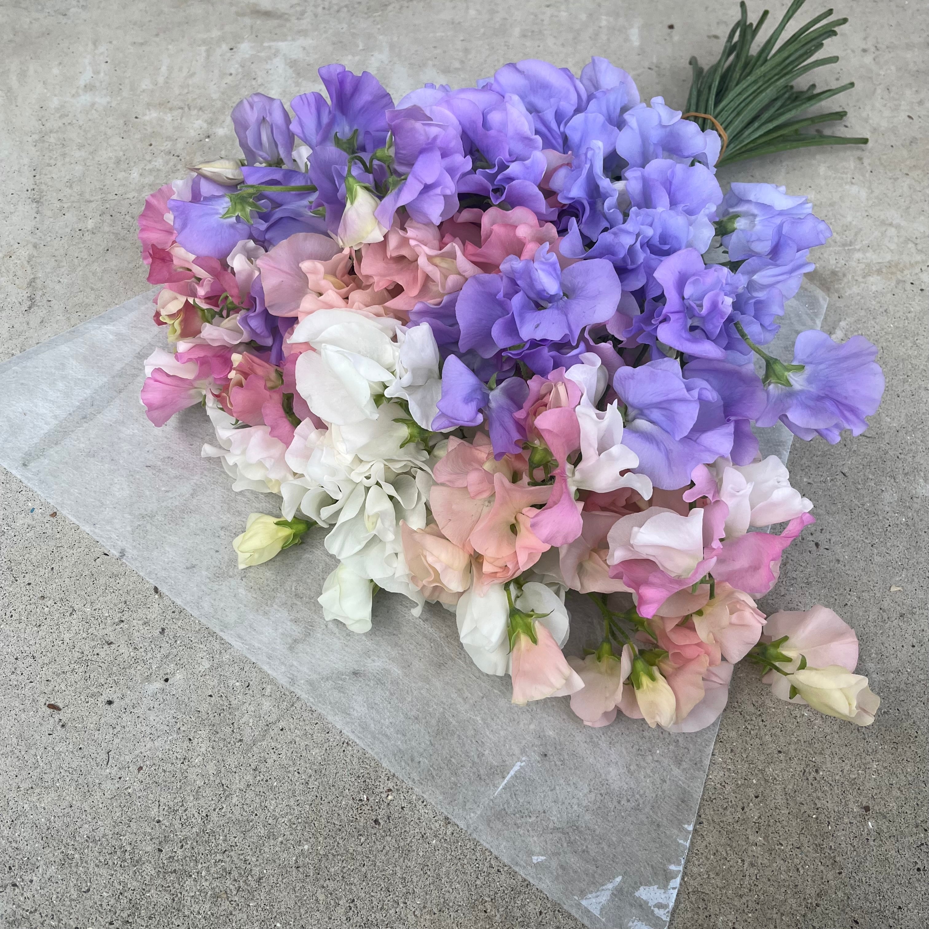 ひと足先に、甘い香りのスイートピーを週間の数量を限らせていただき販売スタートしていきます。軽やかなスイートピーと甘い香りをお楽しみください。