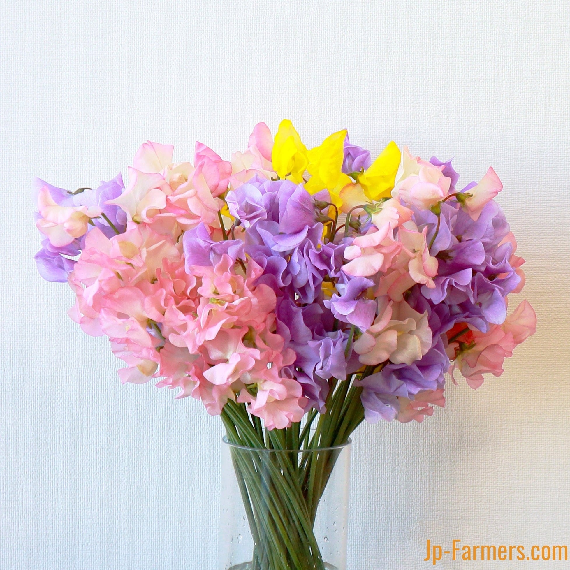 原産地はイタリア・シチリア島で、ヨーロッパではスイートピーをベッドルームなどに飾り、ルームフレグランスとして香りを楽しむそう。