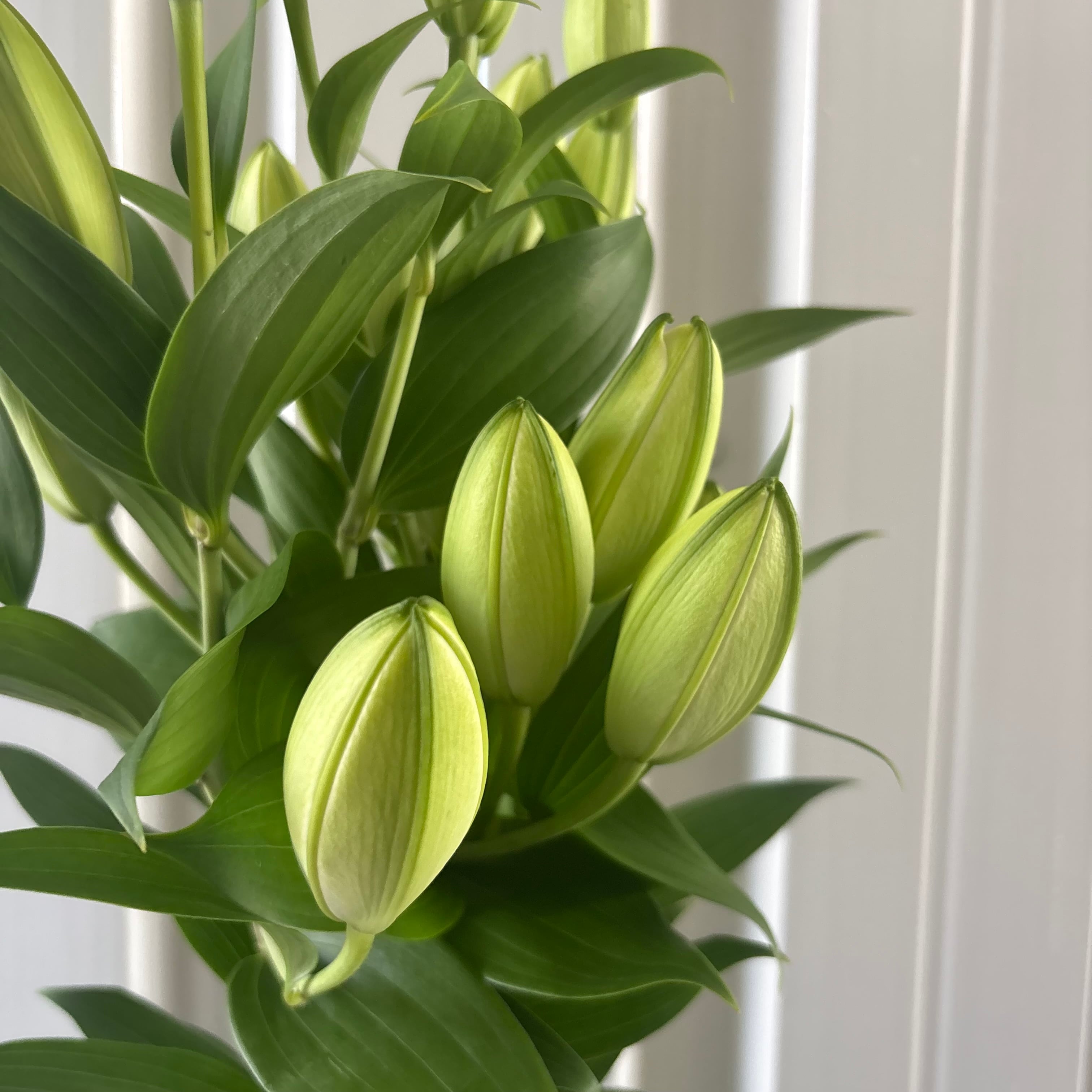 ユリは水を吸うと一気に咲こうとしますが、箱の中で咲くと蒸散と開花により花弁が傷む可能性があります。着荷後下記の水揚げでしっかり水揚げはできますのでご安心いただき、ご了承の上のお買い求めの程よろしくお願いいたします。