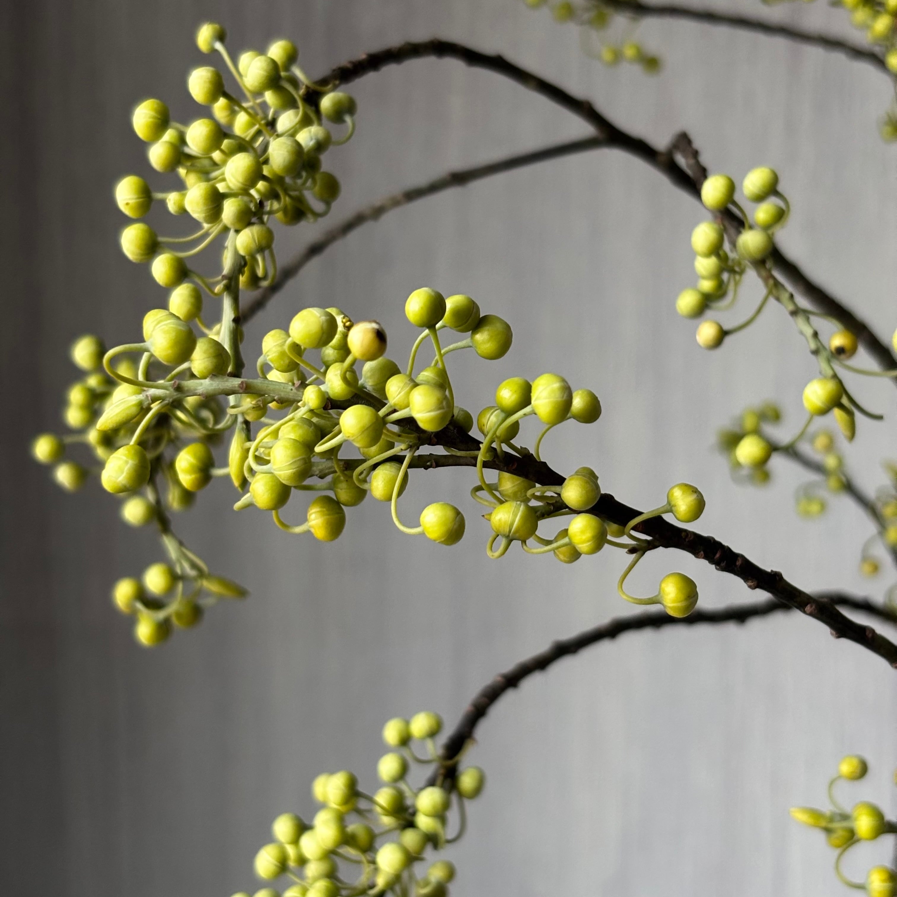 枝物だけで飾っても十分楽しめるとともに、季節のチューリップなどのお花と合わせて飾ってもアクセントが効いたアレンジメントになって粋なフラワーインテリアとなると思いますよ。
